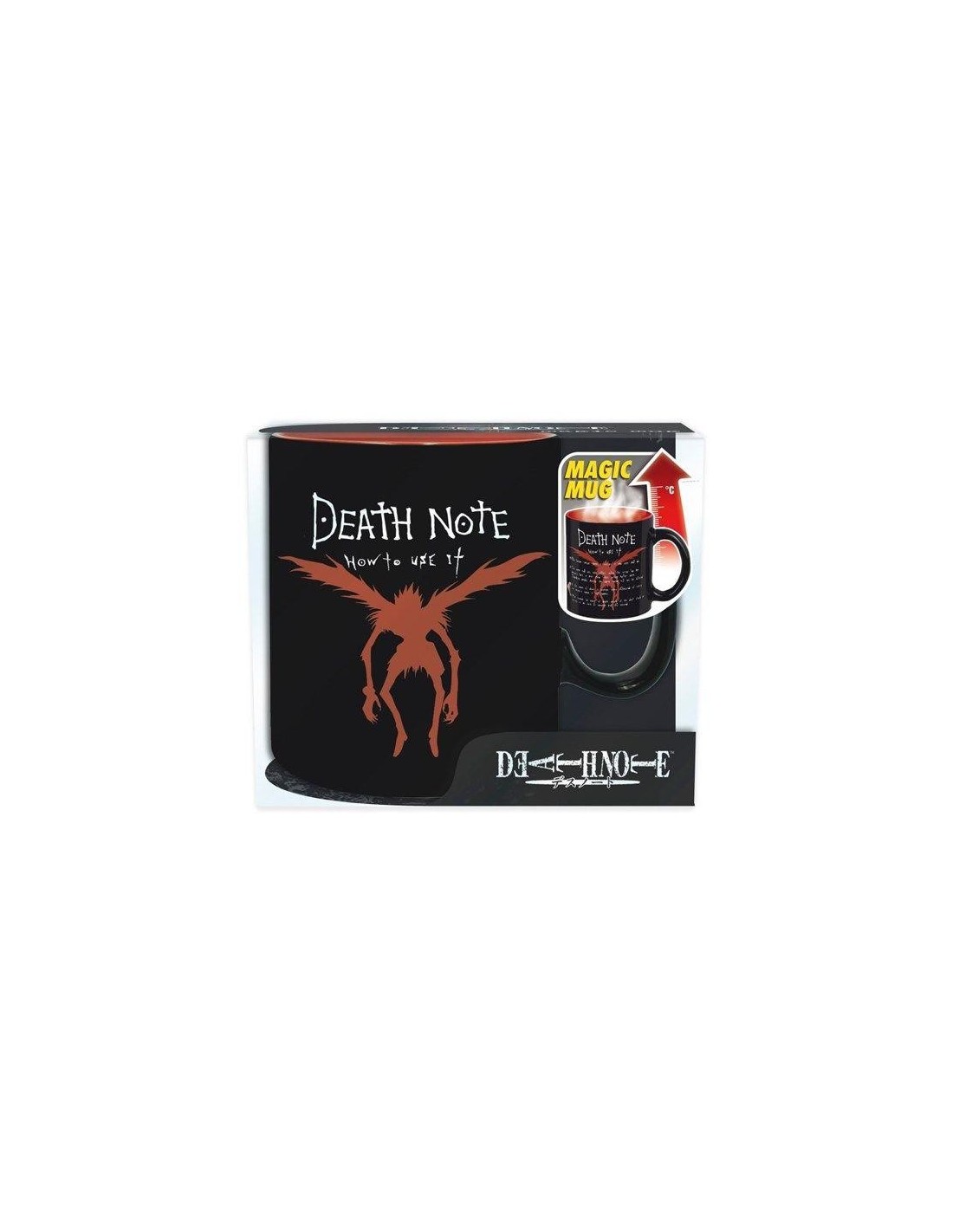 Taza de desayuno de Death Note que reacciona al liquido caliente revelando un diseño oculto. Para 460ml.