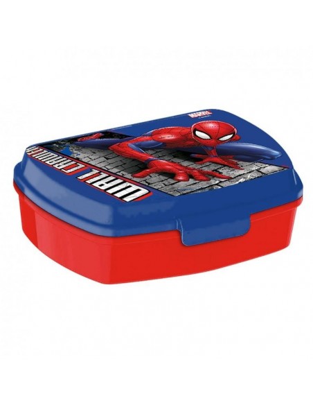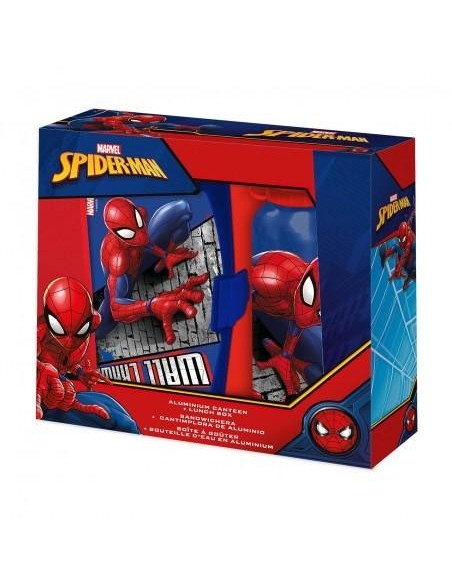 Pack que contiene una cantimplora con capacidad de 500ml y una sadwichera a juego con un estampado de spiderman.