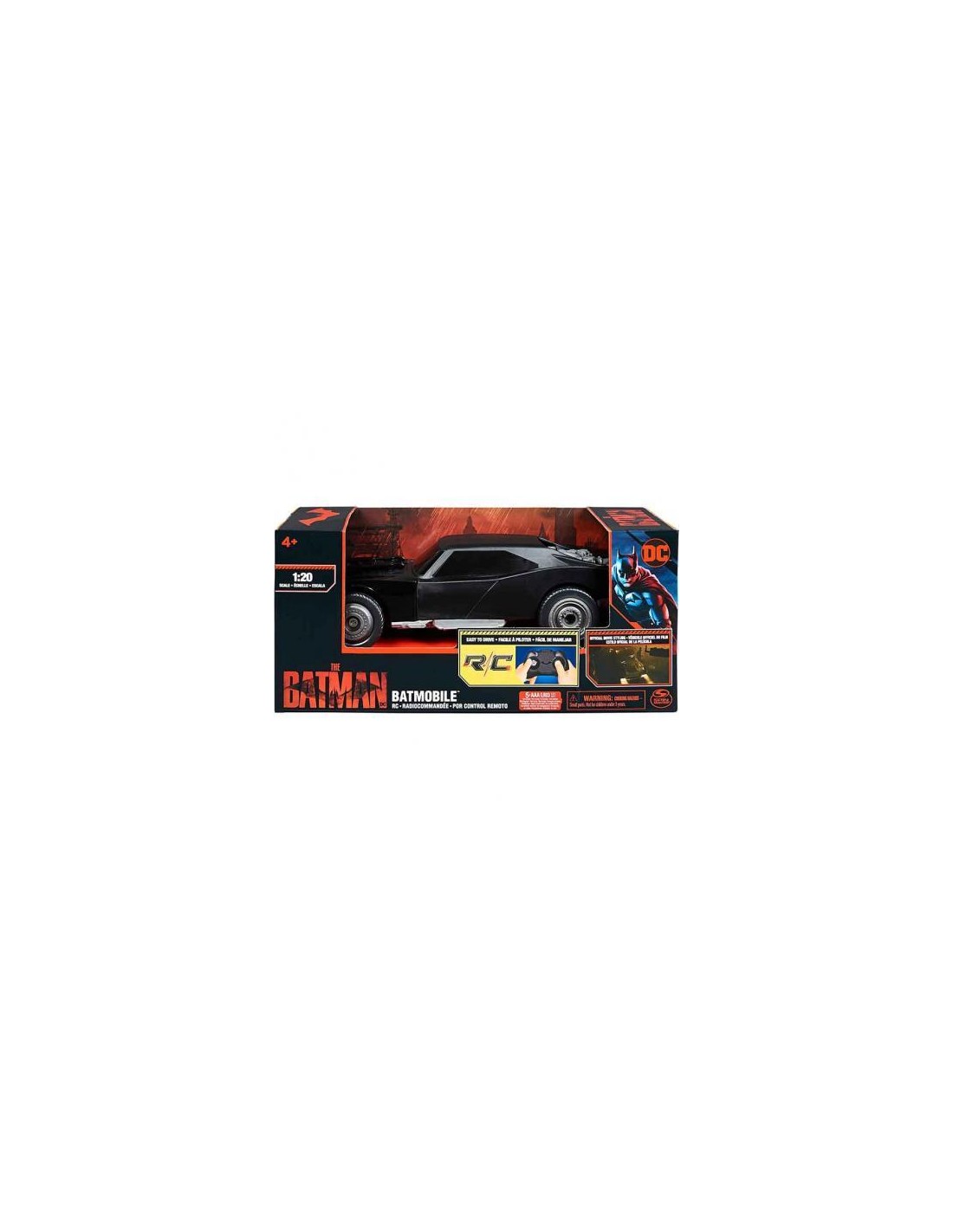 ¡Persigue el crimen en Gotham City con el coche radiocontrol Batmóvil a escala 1:20 Este Este batmóvil teledirigido cuenta con un mando a distancia fácil de conducir y un estilo y detalles auténticos de la película
