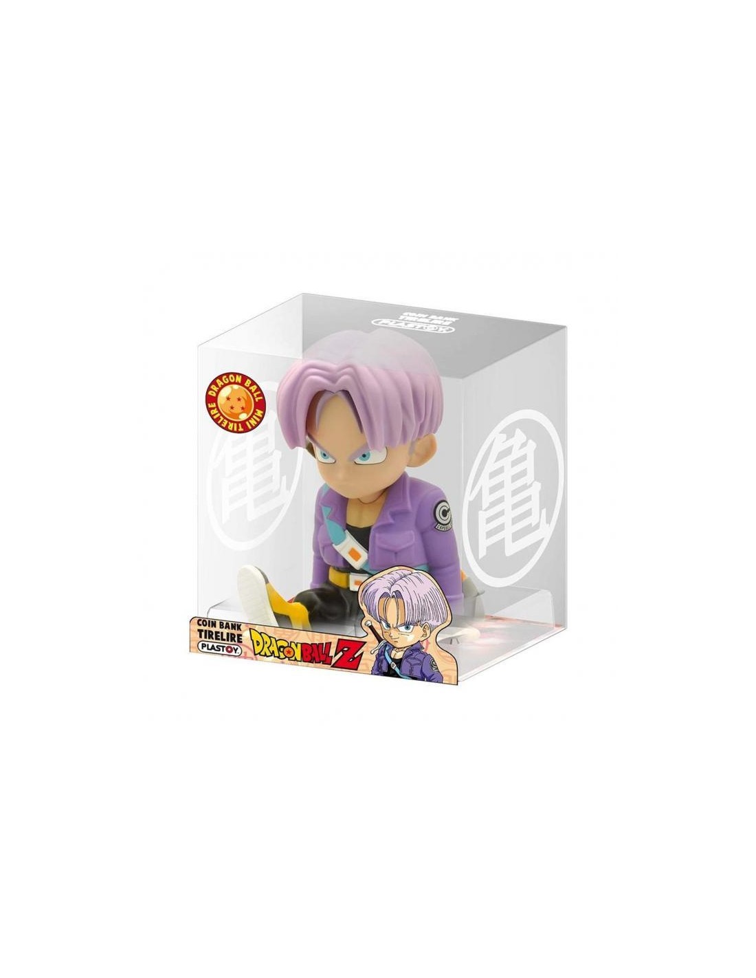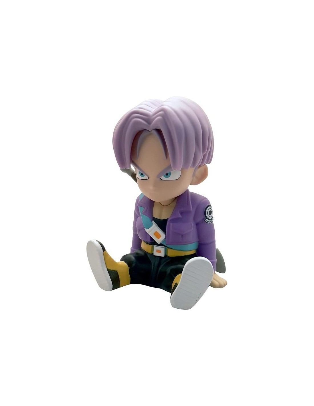 Plastoy presenta esta vistosa hucha en PVC dentro de su colección de figuras basadas en famosos personajes del mundo de la fantasía, el comic y la leyenda. En este caso, presenta la hucha de 15 cm de Trunks, personaje de la popular serie de anime "Dragon Ball", en su versión Chibi.
