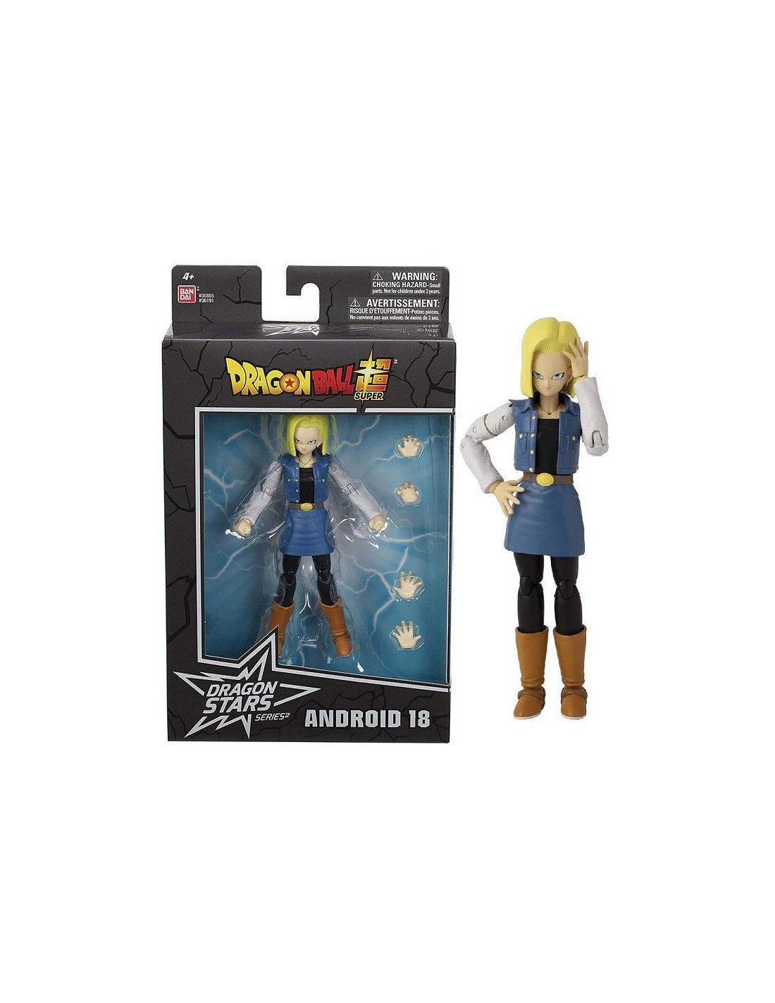 Figura articulada de la Androide 18 del anime Dragon Ball Z. Androide Número 18 conocida como Lazuli cuando era joven, es la hermana melliza del Androide Número 17 y una "androide" creada a partir de una base humana por el Dr. Gero con el único fin de destruir a Goku. Contiene mas de 17 puntos de articulacion y manos recambiables. Tamaño: 17 cm.