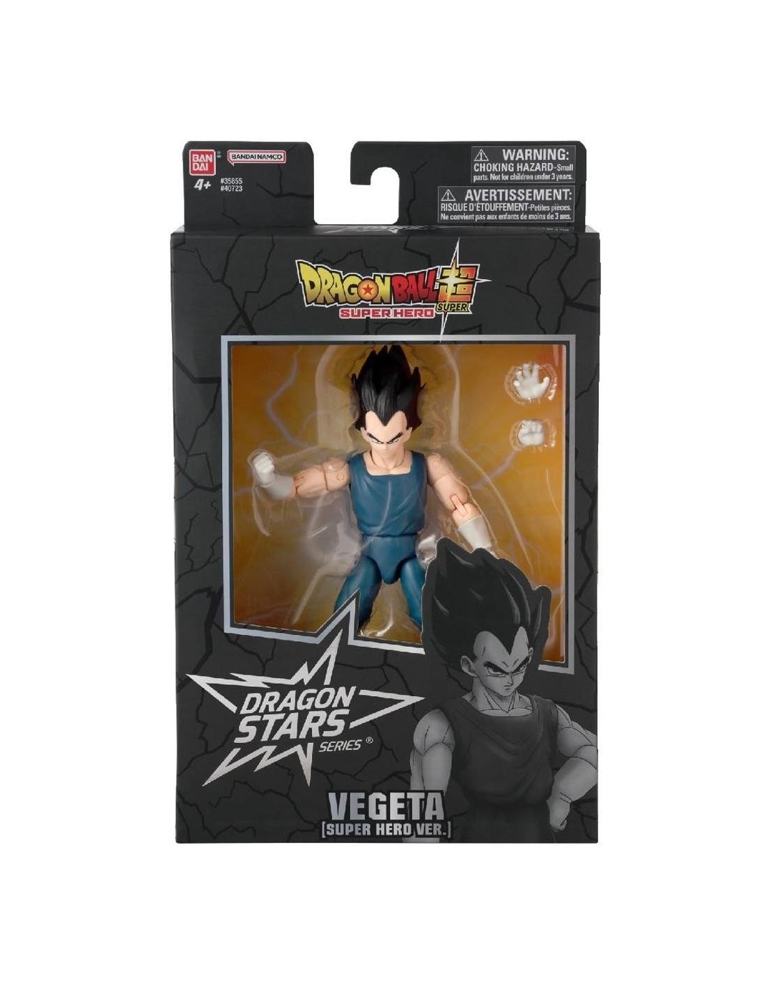 Figura Articulada Vegeta del Anime Dragon Ball Super Hero. Reconocido como el Príncipe Vegeta y conocido mayormente como Vegeta, es el deuteragonista de Dragon Ball Z, Dragon Ball Z Kai y Dragon Ball Super. Es el hijo mayor del rey Vegeta III, así como el príncipe más reciente de la familia real saiyana y uno de los pocos supervivientes tras el genocidio saiyano del planeta Vegeta del Universo 7, a manos de Freeza. Contiene mas de 17 puntos de articulacion y manos intercambiables. Tamaño: 17 cm.
