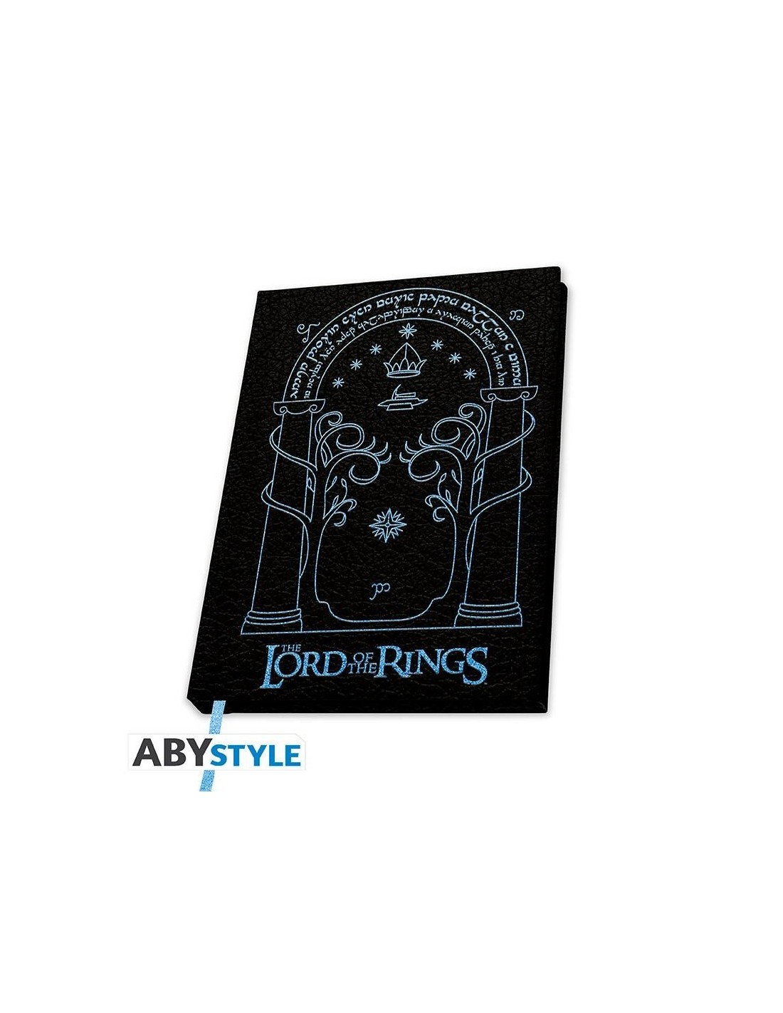 Cuaderno A5 con diseño de las Puertas de Durin, en azul metalizado igual que el canto de las hojas. Tiene 189 páginas.