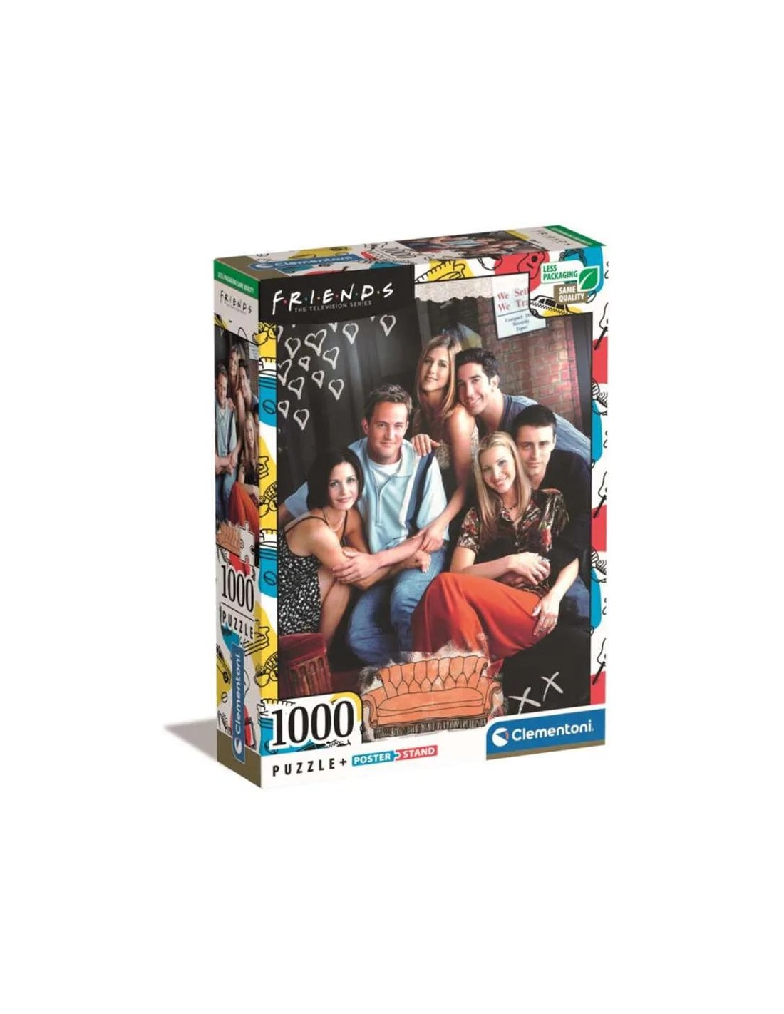 Puzzle de la marca Clementoni de 1000 piezas con imagen de los personajes de la serie de los 90, Friends. Mónica, Rachel, Phoebbe, Ross, Chandler y Joey son el modelo a seguir de cualquier grupo de amigos. Sus divertidas historias y ocurrencias nos siguen haciendo reir con el paso de los años.