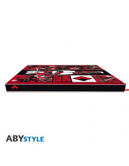 Contempla a Harley Quinn mientras arrasa Gotham City en este cuaderno A5 de ABYstyle. Está sembrando el caos, y puedes usarlo para tomar notas. Harley busca a su "pudin", ¿lo encontrará en el Asilo Arkham?