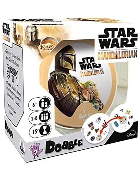 Viaja a una galaxia muy, muy lejana con Dobble Star Wars: The Mandarlorian. ¡Toda la emoción del Dobble original, ahora con símbolos con los personajes de la serie de Disney + The Mandarlorian!