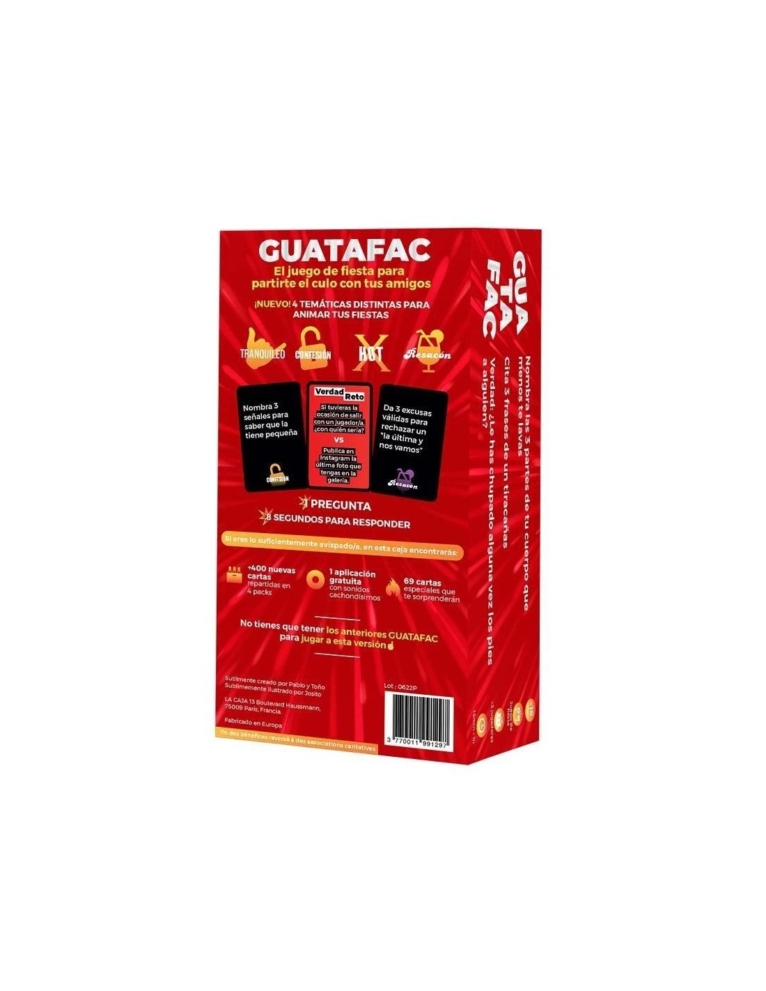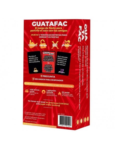 En GUATAFAC : El Punto G, tienes 8 segundos para descubrir los pensamientos más profundos de tus amigos, familiares o incluso extraños. Podrás encontrar 480 cartas con diferentes categorías como: tranquileo, confesión, hot y resacón, además de “Verdad vs Reto” o “El friki”.