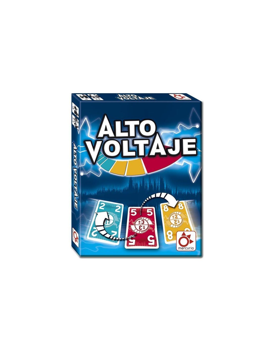 ALTO VOLTAJE de Maureen Hiron ¡Un juego de alta intensidad! Hay una carta con un valor en la mesa con un número que puede sumar o restar en el centro. ¡Rápido! Tienes que encontrar una de tus cartas que sea el resultado de esa suma o resta. Todo depende de las cartas. De 2 a 4 jugadores, a partir de 8 años.