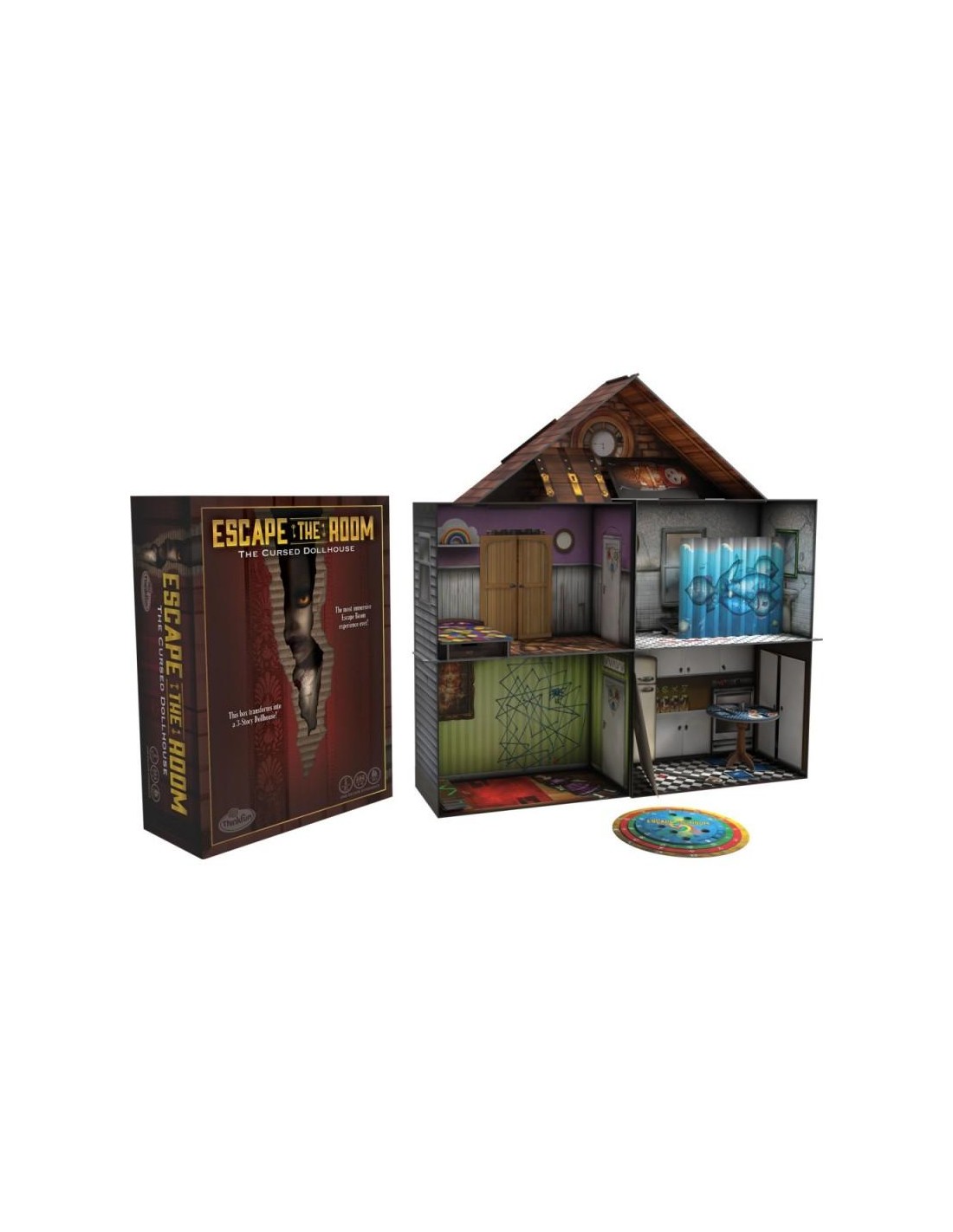 Escape the Room: la Casa de las Muñecas Maldita es un juego de mesa con formato escape the room formado por casa de muñecas de 3 pisos donde tendrás que buscar pistas para solucionar los enigmas y puzzles para poder escapar de ella , la experiencia de escape más realista jamás inventada. Disfruta con esta experiencia de escape fascinante sin salir de casa. ¿Podrás resolver los enigmas y conseguir salir de la Casa de Muñecas ?