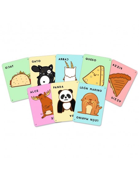 Taco, Vuelta, Cabra, Queso, Pizza es un juego de cartas en el que prima la velocidad y la atención. Si un jugador se descarta de una carta que coincida con lo que dice ¡Lánzate a poner tu mano sobre el centro de la mesa! Además, ¡podrás combinarlo con el juego Original “Taco, Gorro, Tarta, Regalo, Pizza” para más diversión y poder jugar con más amigos!