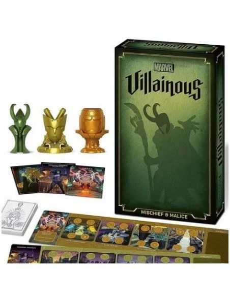 Marvel Villainous: Mischief & Malice es una expansión autojugable del juego de mesa Marvel Villainous: Infinite Power, donde os enfrentaréis los más temidos y carismáticos seres malignos del universo de Marvel. En Marvel Villainous: Mischief & Malice podrás tomar el control de tres nuevos villanos del universo Marvel: Loki, Modok y Madame Máscara.
