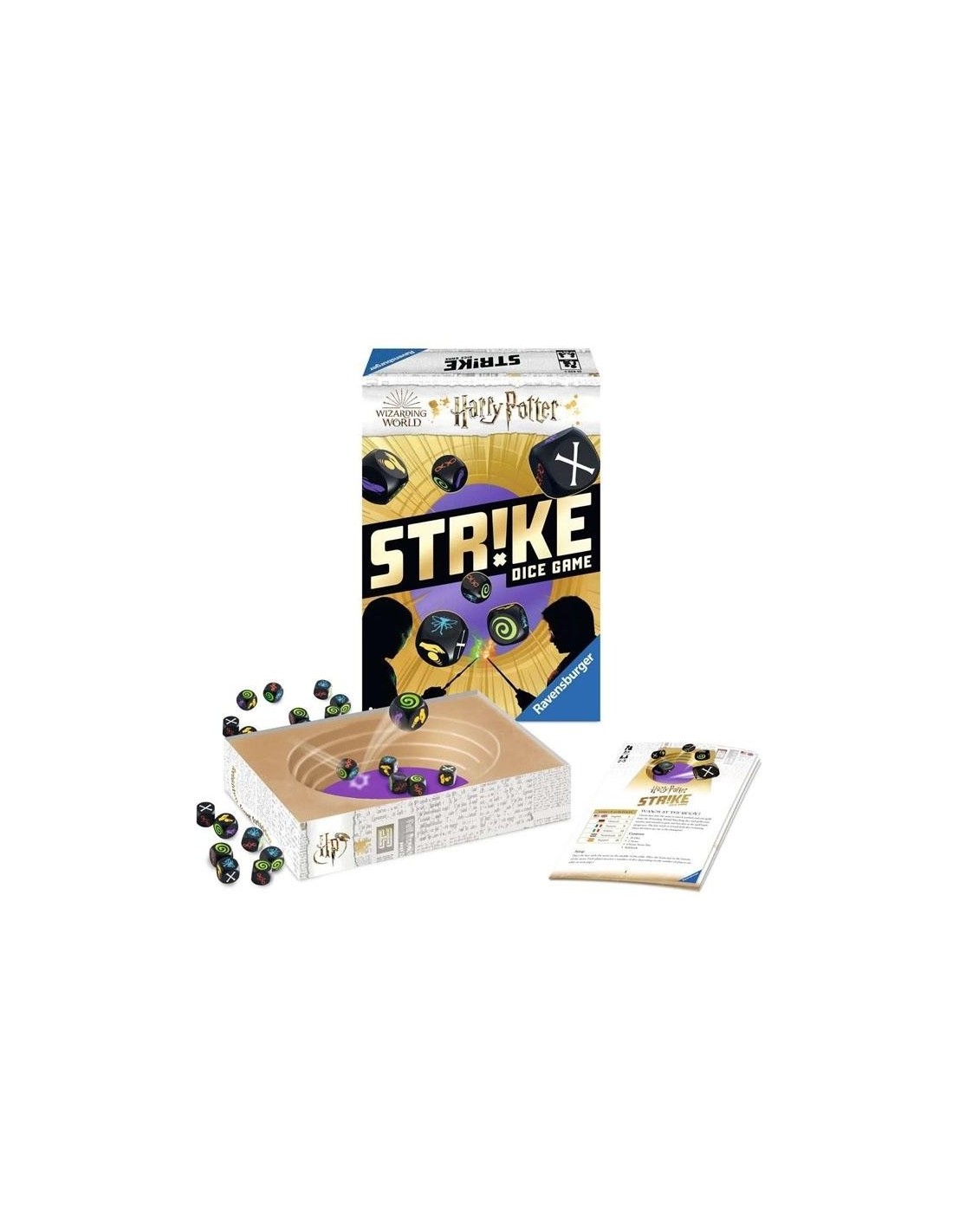 Juego de dados Strike de Harry Potter. Tira los dados para conseguir girar de cara el resto, recoge los que salgan con las caras iguales, ganará el que consiga mas dados al final. Recomendado de 8 a 99 años. De 2 a 5 jugadores.