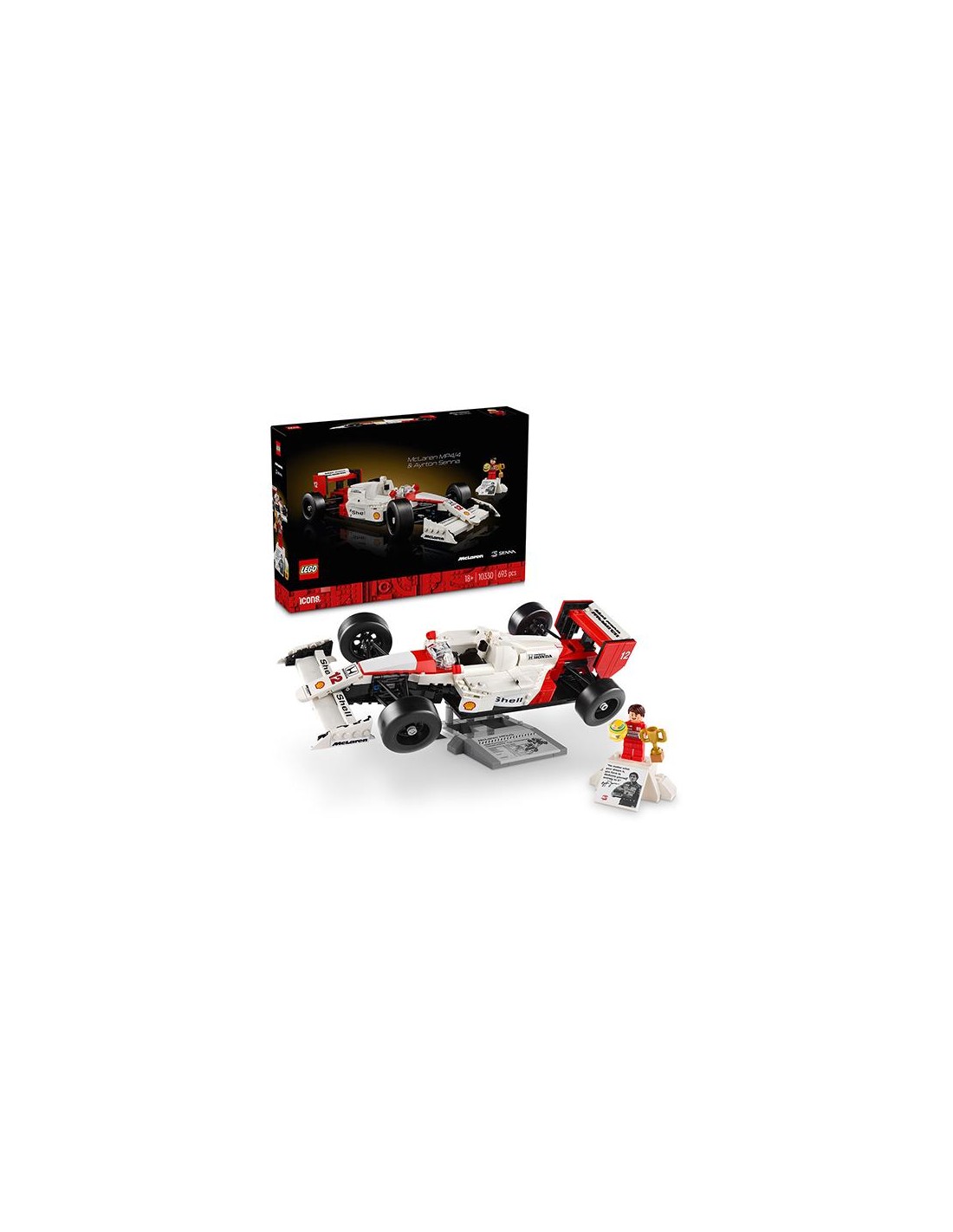 Sumérgete en el emocionante mundo de la Fórmula 1 con este impresionante set de LEGO Icons McLaren MP4/4, que rinde homenaje a uno de los coches de carreras más icónicos de todos los tiempos y al legendario piloto Ayrton Senna. Diseñado específicamente para adultos, este set es apto para mayores de 18 años y es una verdadera joya para los entusiastas de los deportes de motor, la Fórmula 1 y los coleccionistas de LEGO.