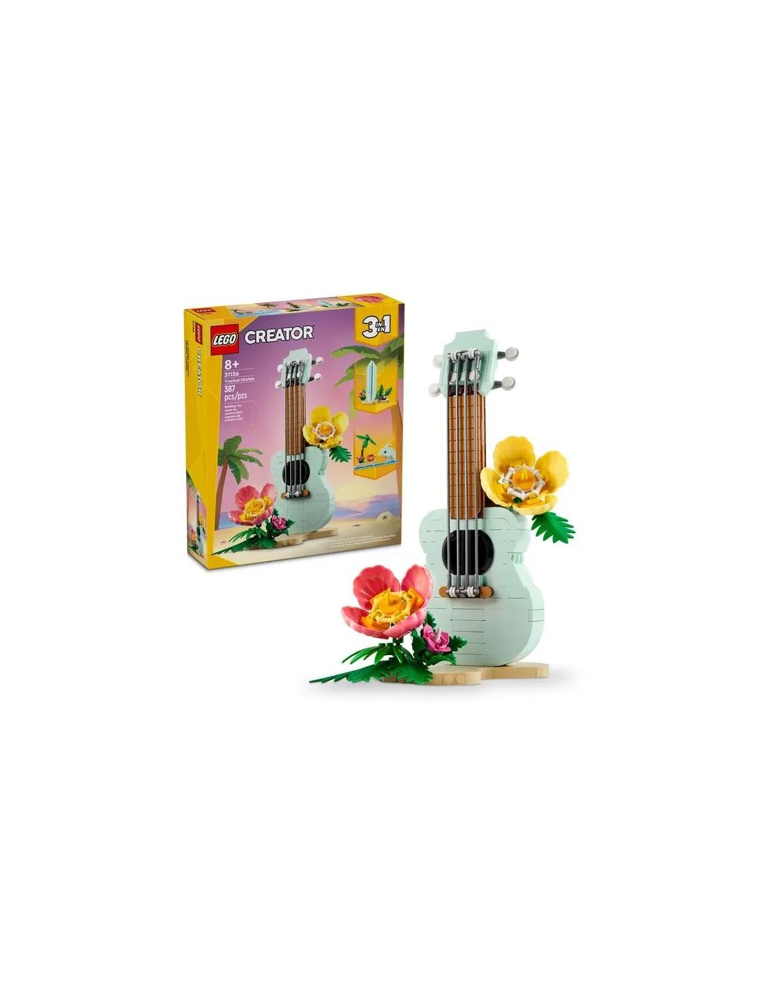 El juego LEGO Creator 3en1 Ukelele Tropical (31156) permite construir 3 modelos playeros, jugar con ellos y exponerlos. Una fantástica idea de regalo para niñas y niños de 8 años o más, incluye un ukelele en una base que evoca una playa con 2 coloridas flores y hierba. El instrumento de juguete puede separarse de la base y tiene 4 cuerdas de plástico que vibran al rasguearlas. Este set LEGO Creator 3en1 proporciona a los peques 3 experiencias de construcción y juego con los mismos ladrillos. Pueden construir un ukelele de juguete, convertirlo en un delfincito saltarín sobre una base que representa el océano y la playa, con una palmera, flores y una concha, o transformarlo en una tabla de surf en una base con forma de playa donde hay flores y una radio. Los juguetes LEGO Creator 3en1 son emocionantes regalos para los niños porque cada caja les ofrece la posibilidad de construir 3 modelos que abarcan desde vehículos superrápidos y animales increíbles hasta detalladas escenas urbanas.