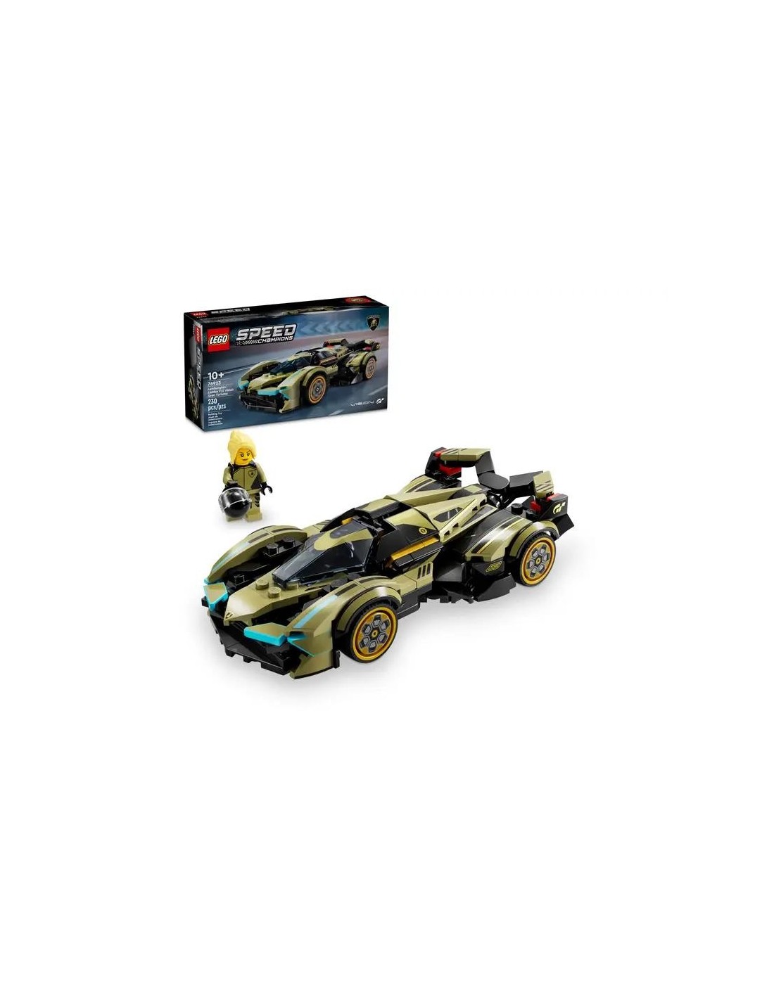 LegoLos niños y las niñas a partir de 10 años pueden construir el Superdeportivo Lamborghini Lambo V12 Vision GT LEGO Speed Champions (76923), además de jugar con él, exponerlo y coleccionarlo. Este Lamborghini futurista para peques y fans de los videojuegos incluye numerosos detalles de diseño del icónico modelo virtual que aparece en la serie de videojuegos Gran Turismo. El coche de juguete LEGO cuenta con la famosa carrocería afilada del modelo, habitáculo que se abre levantando el parabrisas y el capó, alerón trasero dividido, detalles hexagonales en las llantas de las ruedas, tubo de escape doble, logotipos de Gran Turismo y luces traseras en forma de Y. La maqueta coleccionable viene con una minifigura de una piloto con casco para jugar a competir. Los sets LEGO Speed Champions permiten construir réplicas de los vehículos más emblemáticos del mundo. Tu peque y tú podéis crear la vuestra siguiendo las instrucciones impresas o la app LEGO Builder, que os guía en la intuitiva aventura.