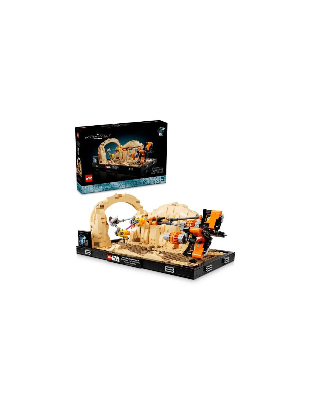 ¡Recrea la emocionante carrera de vainas de Mos Espa con el diorama LEGO Star Wars! Adéntrate en la acción trepidante de Star Wars: La Amenaza Fantasma con este impresionante diorama LEGO Star Wars Carrera de Vainas de Mos Espa. Este set de construcción, diseñado para fans adultos de la saga, te permite revivir la legendaria carrera de vainas en la que Anakin Skywalker compitió por su libertad. Construye y exhibe una escena emblemática de Star Wars: Diorama detallado: El set recrea con gran detalle el tramo del Cañón del Arco del circuito de carreras de vainas de Mos Espa, incluyendo el terreno rocoso, las tribunas llenas de espectadores y la línea de meta. Vainas de carreras auténticas: Construye las vainas de carreras de Anakin Skywalker y Sebulba, con sus característicos diseños y colores. Minifiguras incluidas: El set incluye minifiguras de Anakin Skywalker, Sebulba y Wat Tambor, junto con sus respectivos droides y accesorios. Piezas móviles: Las vainas de carreras cuentan con ruedas giratorias y otros elementos móviles para recrear la acción de la carrera. Experiencia de construcción gratificante: Este set de 718 piezas ofrece un desafío de construcción divertido y desafiante para fans de LEGO de 18 años en adelante. ¡No te pierdas la oportunidad de añadir este diorama épico a tu colección LEGO Star Wars!