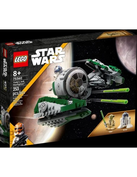Los peques podrán explorar una galaxia muy, muy lejana con 2 populares personajes de Star Wars™ y el modelo LEGO® Caza Estelar Jedi de Yoda (75360) para construir con ladrillos. Cuenta con cabina abatible para la minifigura LEGO del Maestro Yoda, espacio para la figura LEGO del droide R2-D2, 2 cañones automáticos y alas ajustables para situarlas en las posiciones de vuelo y aterrizaje.