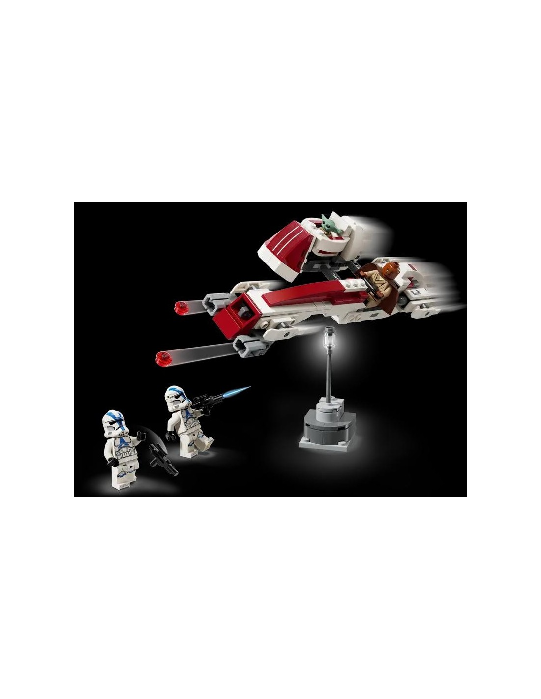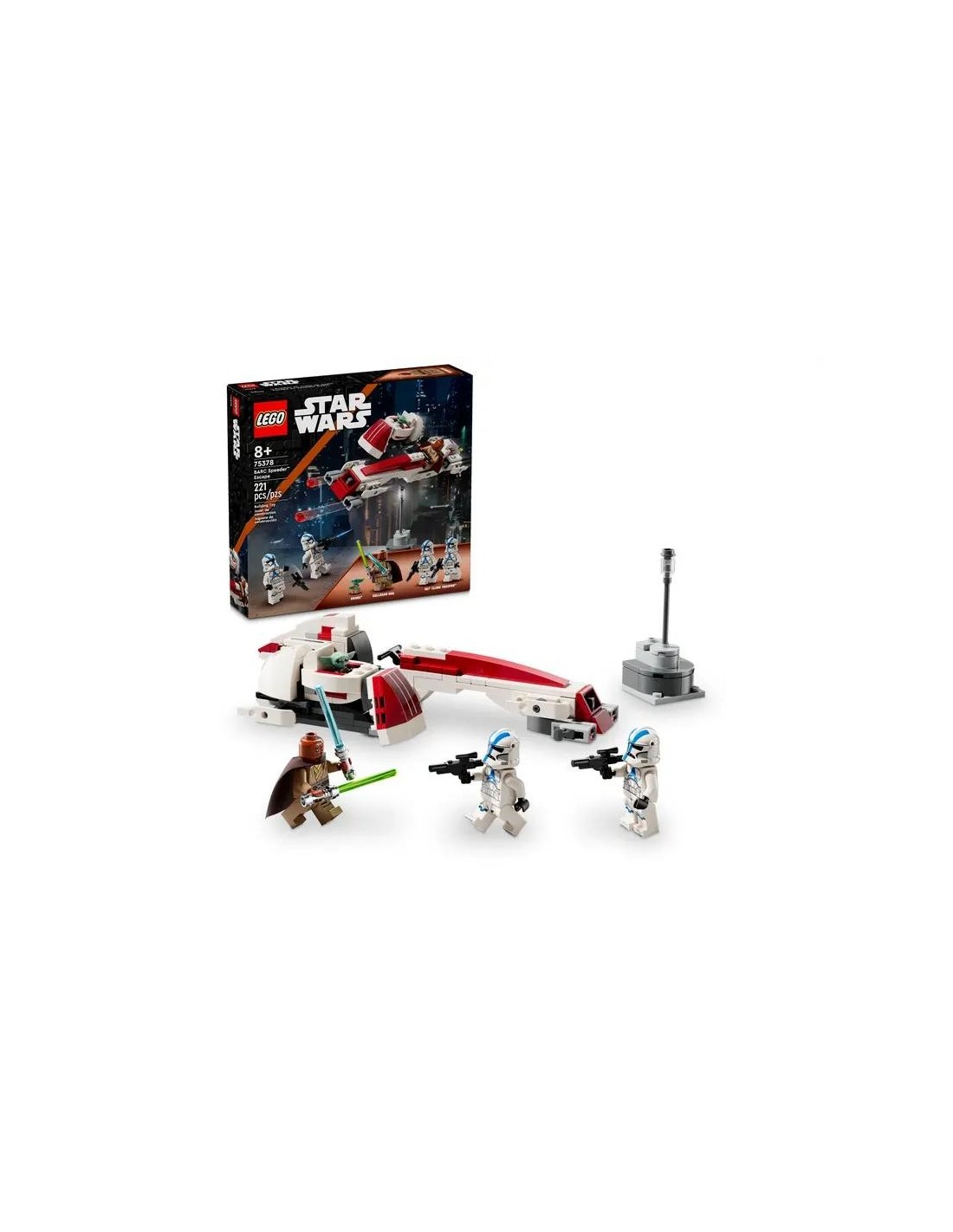 Revive la emocionante escena de la huida en speeder BARC de la temporada 3 de Star Wars: The Mandalorian con este impresionante set LEGO® Star Wars (75378). Ideal como regalo para niños, niñas, fans y coleccionistas de Star Wars a partir de los 8 años, este set exclusivo incluye una moto speeder con sidecar LEGO para armar. El speeder cuenta con una cabina para una minifigura, 2 cañones que disparan y el cochecito flotante de Grogu se conecta al sidecar desmontable. Además, este set contiene un pequeño modelo escenográfico y 3 minifiguras LEGO: Kelleran Beq (con una espada láser azul y otra verde) y 2 soldados clon de la 501 (con blásteres), junto con una figura LEGO de Grogu (conocido por los fans como Baby Yoda) para fomentar el juego creativo. Este emocionante juguete de aventuras viene con instrucciones paso a paso. ¡Los niños también pueden descargar la app LEGO Builder y utilizar sus herramientas para disfrutar de una experiencia de construcción aún más divertida! Número de piezas: 221. Medidas aproximadas: 4 cm de altura, 19 cm de longitud y 9 cm de anchura. ADVERTENCIA: No apto para niños menores de 36 meses. Contiene piezas pequeñas. Cumple con las normas de seguridad europeas. Se recomienda su uso bajo la supervisión de un adulto. Precaución: Riesgo de asfixia. Piezas pequeñas.