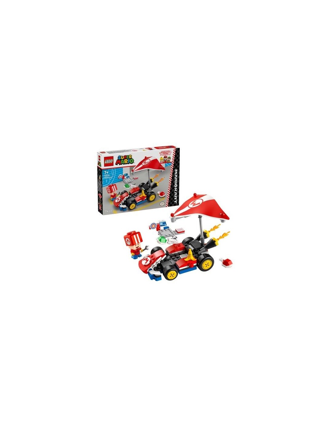 Lego Super Mario¡Prepárate para competir, derrapar y planear en el kart estándar de este juego de aventuras (72032)! El set, una emocionante idea de regalo de cumpleaños LEGO Super Mario para niños, niñas y jugadores de 7 años o más, incluye un modelo construible del kart estándar de Mario Kart, una estación de trabajo con una diana y una figura de juguete de Toad (boxes) con uniforme de boxes rojo. El kart estándar está equipado con superala estándar desmontable, ruedas para derrapar y función de lanzamiento de caparazones a la diana de la estación de trabajo. Pilota el kart con una figura de LEGO Mario, LEGO Luigi o LEGO Peach (de los sets 71439, 71440 o 71441, a la venta por separado) para jugar de forma interactiva y desencadenar efectos de sonido al iniciar la carrera, tocar el claxon, derrapar y planear, y pisa la etiqueta de acción de la estación de trabajo para provocar más reacciones digitales. Este set coleccionable Nintendo es ideal para jugar a solas o como actividad social.
