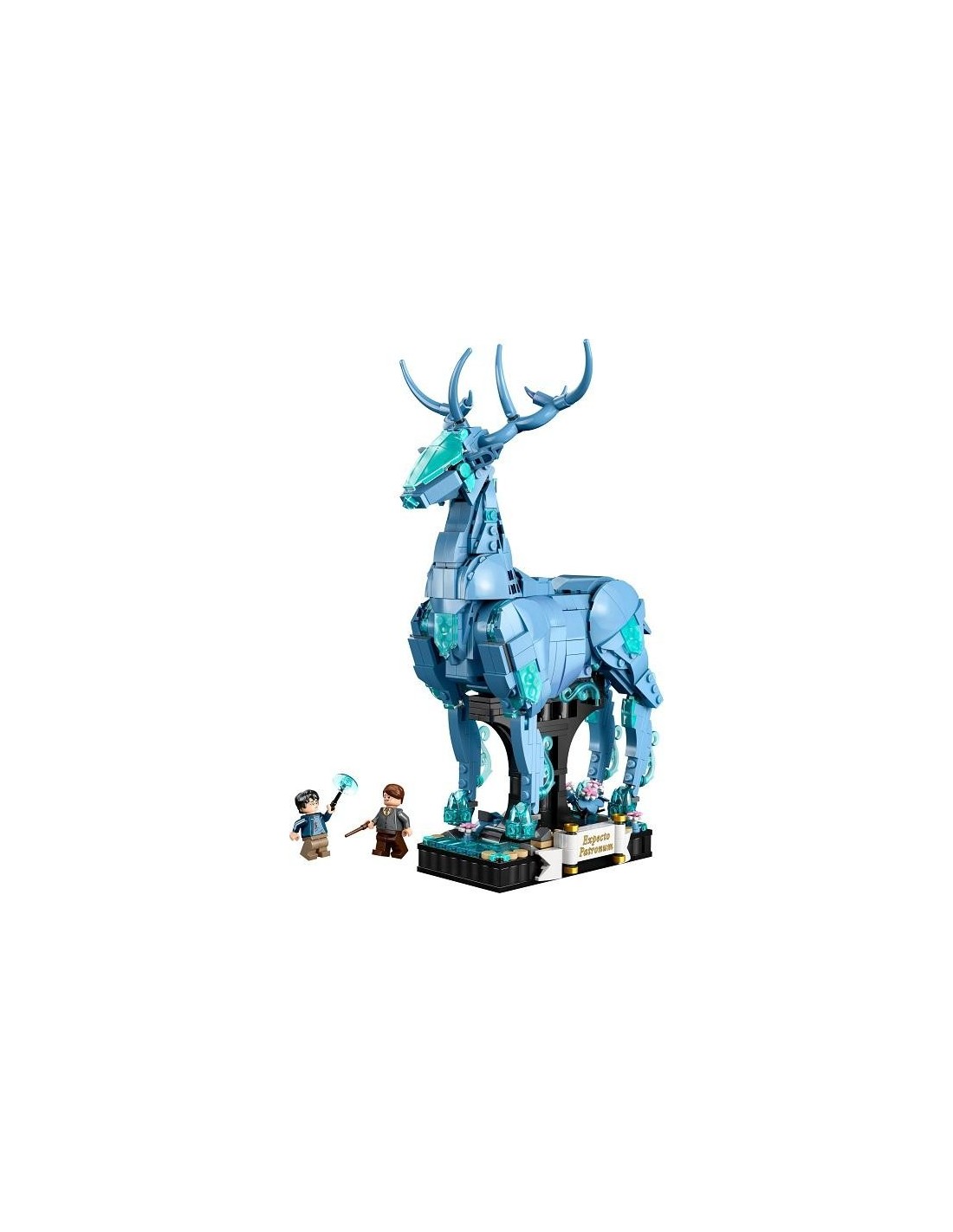 2 minifiguras LEGO: Remus Lupin y Harry Potter con una varita de juguete. Conecta elementos LEGO a la varita para crear un efecto de "encantamiento". El modelo del Patronus ciervo construible mide aproximadamente 29 cm de altura, 22 cm de longitud y 11 cm de anchura.