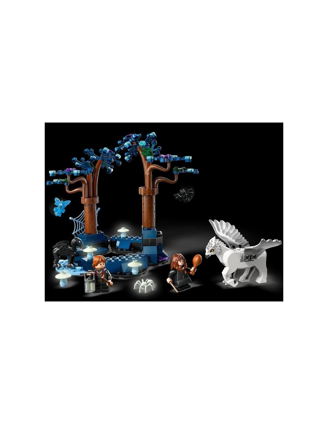 Construye un modelo LEGO del Bosque Prohibido lleno de criaturas mágicas con este juego de juguetes de fantasía LEGO Harry Potter para niñas y niños (76432). Incluye árboles con hojas de colores nocturnos, además de una araña de juguete (brilla en la oscuridad) y 4 hongos (brillan en la oscuridad) que contribuyen a crear una atmósfera encantada. El set contiene 2 minifiguras LEGO (Ron Weasley y Hermione Granger), así como una figura de juguete de Buckbeak, una figura de una cría de Thestral y una figura de un duendecillo de Cornualles.