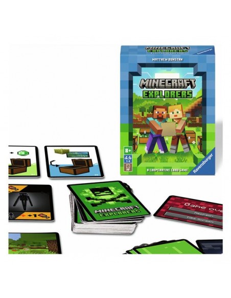 Minecraft: Explorers es un un juego de cartas cooperativo en el que los jugadores podrán exploran juntos el basto mundo de Minecraft en busca de objetos y tesoros.
