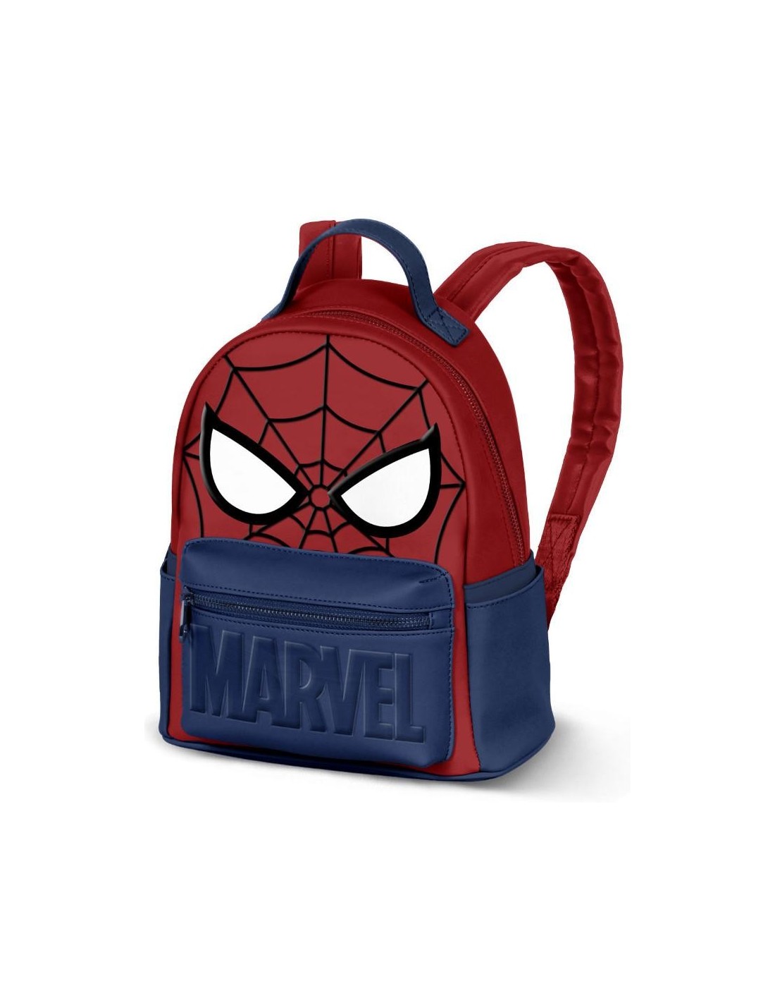 Mochila pequeña de Spiderman, fabricada en polipiel, con unas medidas de: 29x24,5x15cm.