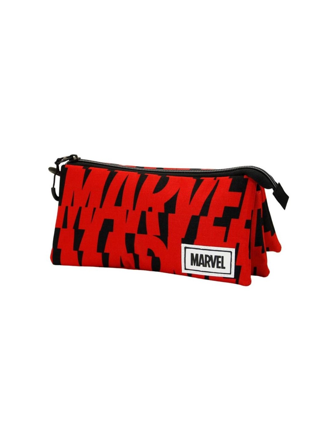 Se trata de un estuche con tres compartimentos diferentes y cuenta con cierre de cremallera, con un tamaño perfecto para usarlo en el día a día y llevarlo allá a donde vayas. Mide aproximadamente 23,5 x 11 x 5 cm, cuenta con una extraordinaria calidad tanto en materiales como en acabados y licencia oficial de Marvel. Pero sin duda lo más sorprendente es su diseño, con un estampado rojo y negro de lo más elegante y formado por ese icónico logo de Marvel que tan bien conocemos los fans.