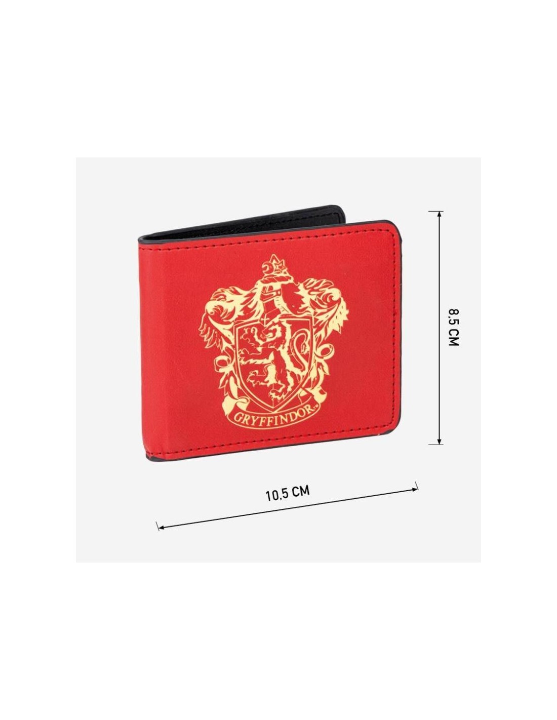 Echa un vistazo a todas las fotos para que veas la cantidad de compartimentos de los que dispone para meter tarjetas, billetes o monedas, aparte de que tiene un tamaño realmente fantástico: 10.5 x 8,5 cm cuando está cerrada. No te pierdas su genial diseño, con el escudo de la casa de Gryffindor, reproducido en dorado con todo lujo detalles. Está fabricado en PVC y piel sintética, sin la utilización de piezas ni componentes de origen animal, y en ese color rojo tan característico y que tan elegante queda, especialmente junto a los detalles en color dorado. Fíjate bien en las fotos para que veas todos los detalles tanto del exterior como del interior de esta cartera cuyo diseño está realmente cuidado.