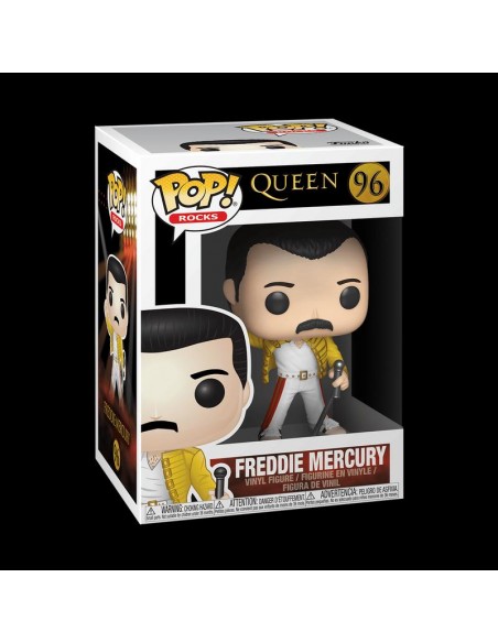 El legendario cantautor de rock Freddie Mercury te dejará boquiabierto con esta figura Pop! de él con su icónico atuendo de Wembley de 1986. Mide aproximadamente 9,5 cm de alto.