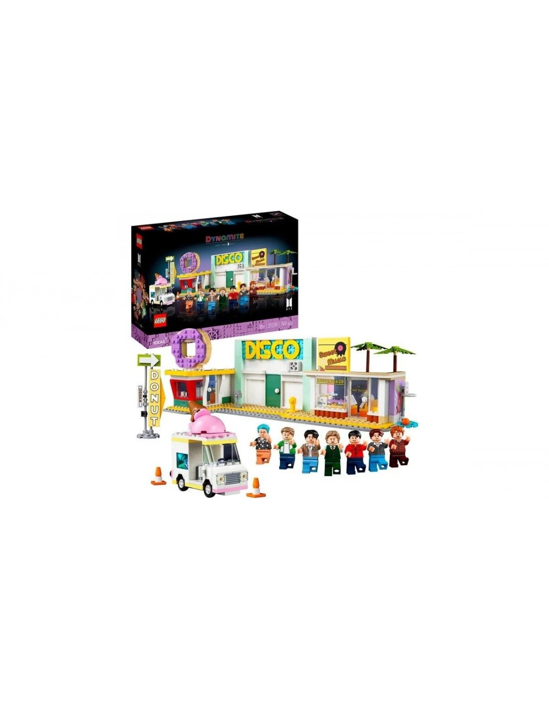 Rodéate de la alegre energía de los iconos del pop del siglo XXI RM, Jin, SUGA, j-hope, Jimin, V y Jung Kook con el set LEGO Ideas BTS Dynamite (21339). Recrea las escenas del vídeo musical de Dynamite con versiones LEGO de la disco, la tienda de música, la tienda de dónuts, el camión de los helados y más. Sitúa las minifiguras LEGO de los integrantes de la banda en los diferentes espacios o colócalas todas en el escenario especial y gira la rueda para verlas bailar.