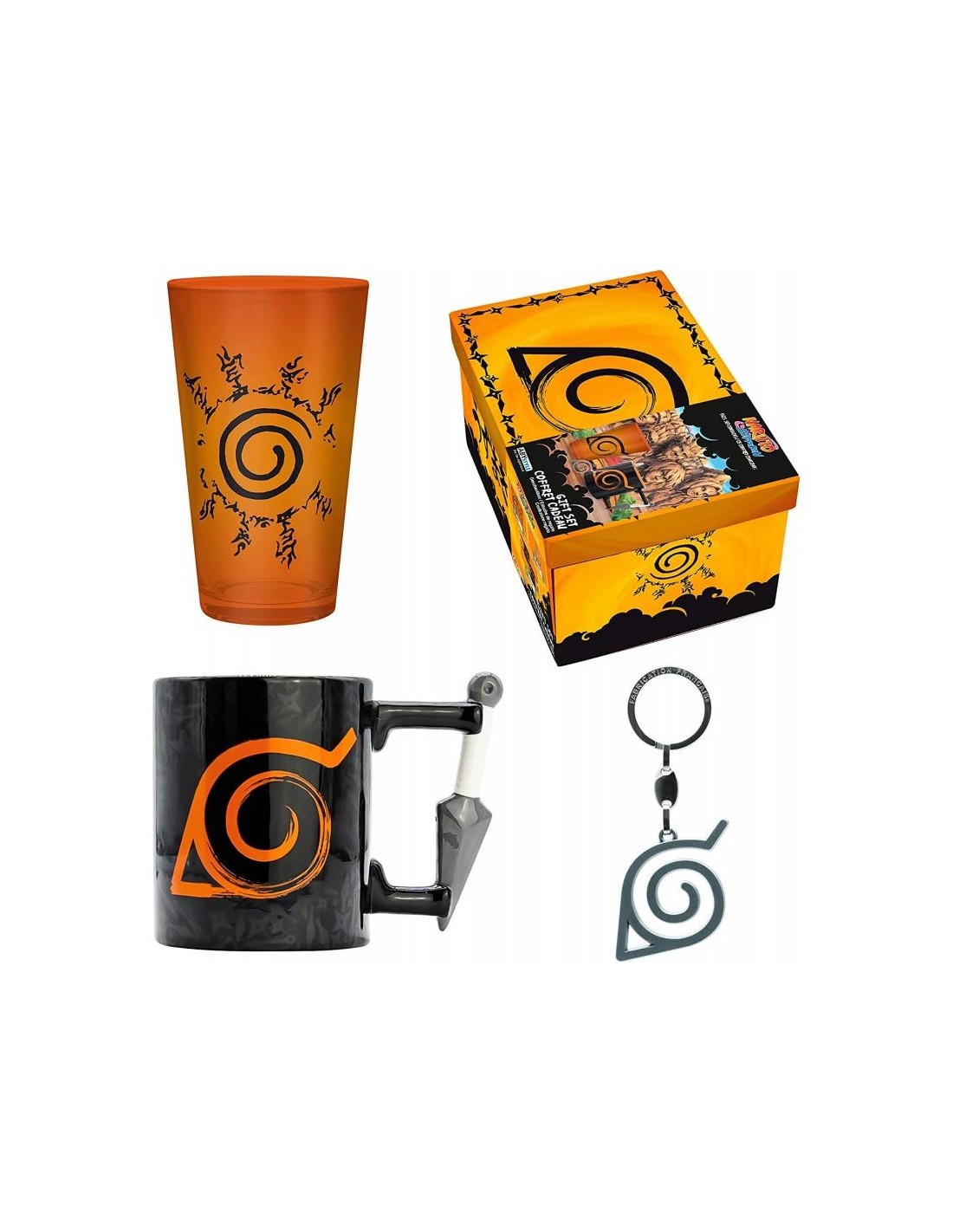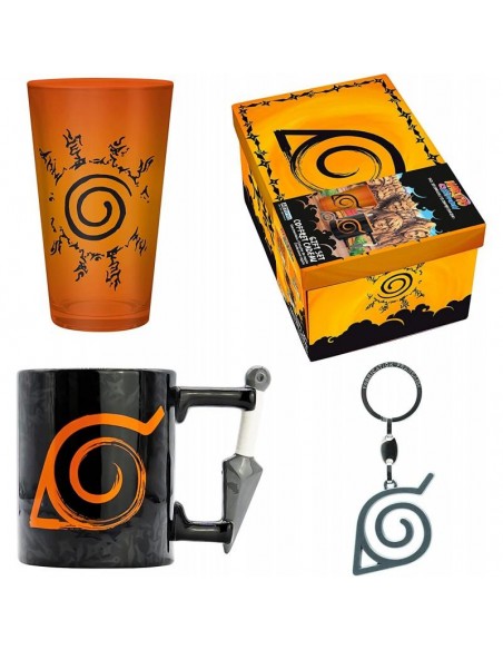 El icónico manga y anime Naruto Shippuden ha sido seguido por millones de fans del camino del Ninja en todo el mundo. Si tu eres uno de esos seguidores o si conoces a uno que quiera tener una exclusiva caja de regalos Premium, tenemos lo que estás buscando… Este pack incluye un llavero de metal del símbolo Uzumaki, una taza de cerámica de gran calidad y 460 mls de capacidad con ilustraciones del símbolo en negro y naranja y un impactante asa en 3D, y un vaso de cristal de 400 mls de capacidad y los mismos símbolos pero con colores invertidos. Todo ello viene en una caja cuidadosamente diseñada para que quede de escándalo en tu estantería y puedas guardar todo lo que necesites. La taza y el vaso no son aptos para su uso en lavavajillas ni microondas.