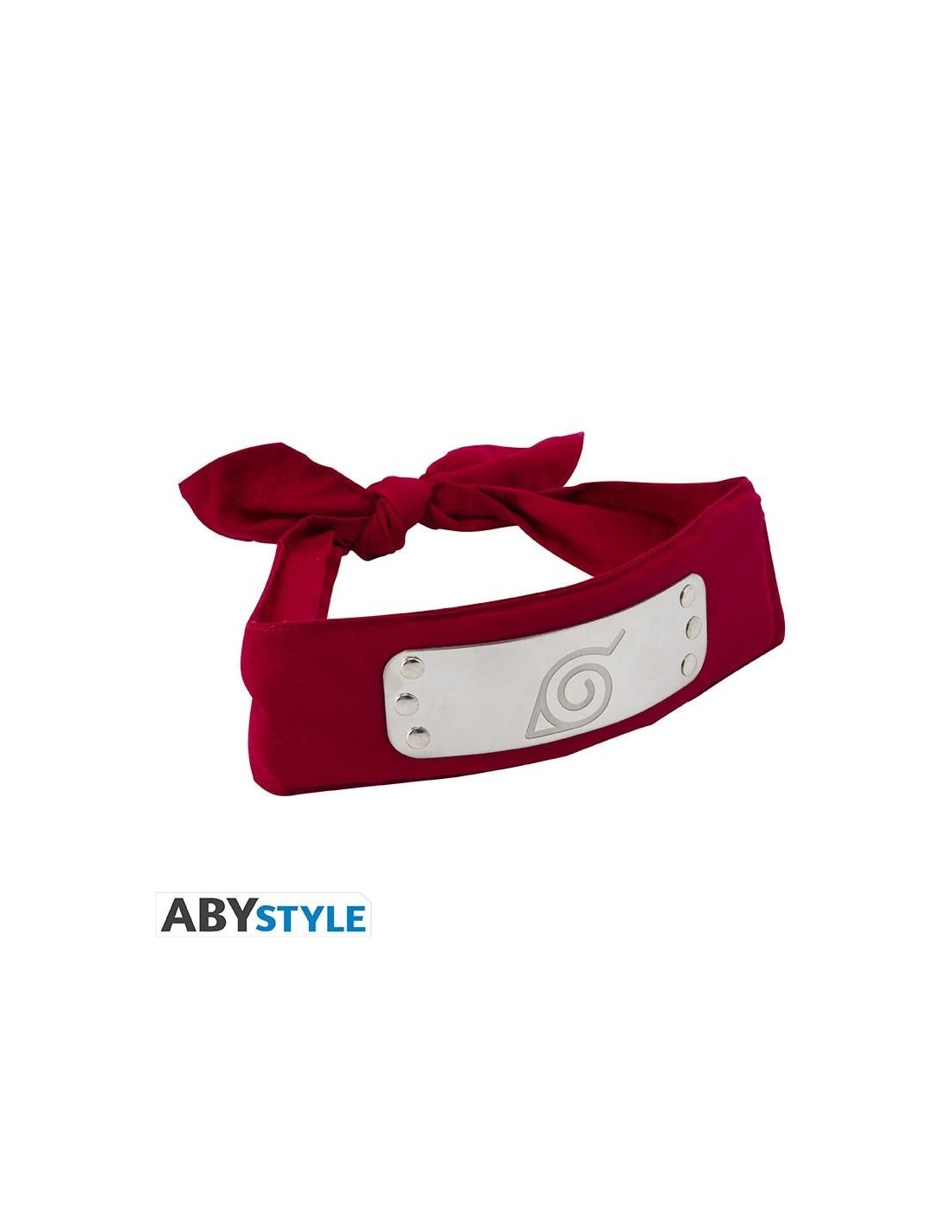 Replica oficial de la bandana roja de Konoha del anime Naruto Shippuden. Material: Bandana de poliéster, Placa de acero inoxidable. Tamaño: 90x5 cm.