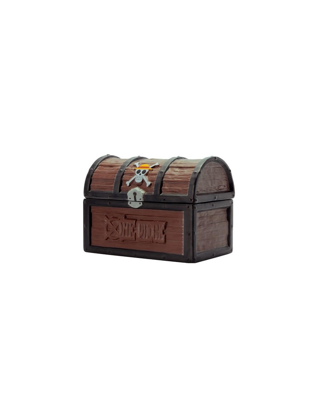Galletero con el diseño de un cofre del tesoro con un tamaño aproximado de 19 x 11,5 x 14 cm.