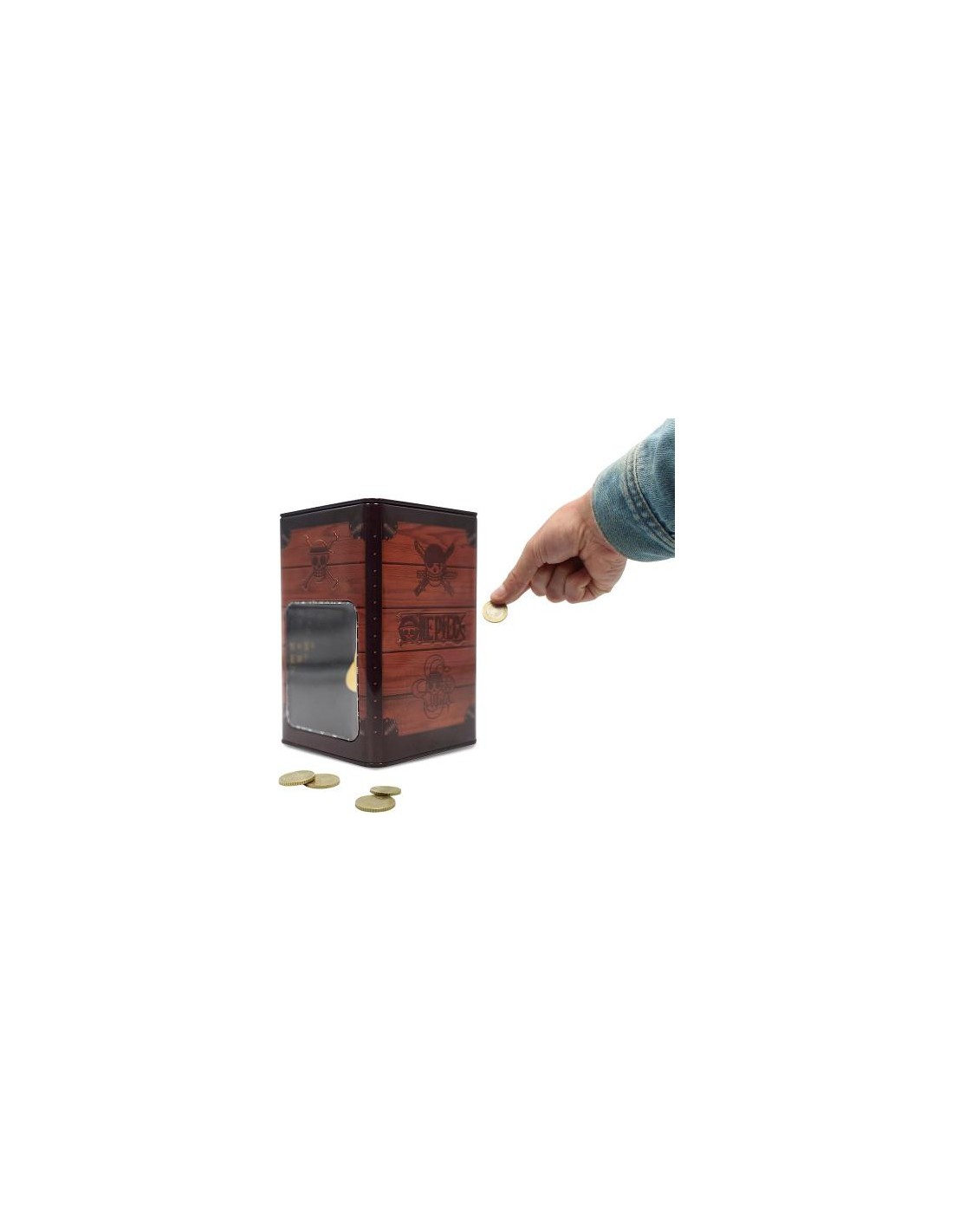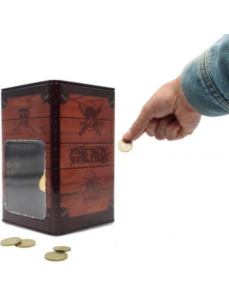 Y es que se trata de una hucha metálica llena de color, y que tiene un diseño de esos que te quedas un rato mirándolos, basado en el Sombero de Paja que lleva el personaje principal. Mide aproximadamente 10.8 x 10.8 x 16.6 cm.