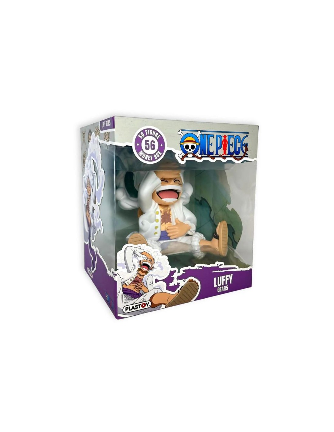 Si eres fan de One Piece y te encanta la transformación Gear 5 de Monkey D. Luffy, esta hucha figura de 15 cm es perfecta para ti. Fabricada en PVC de alta calidad por Plastoy, captura a la perfección la esencia desenfadada y poderosa de Luffy en su forma más épica.