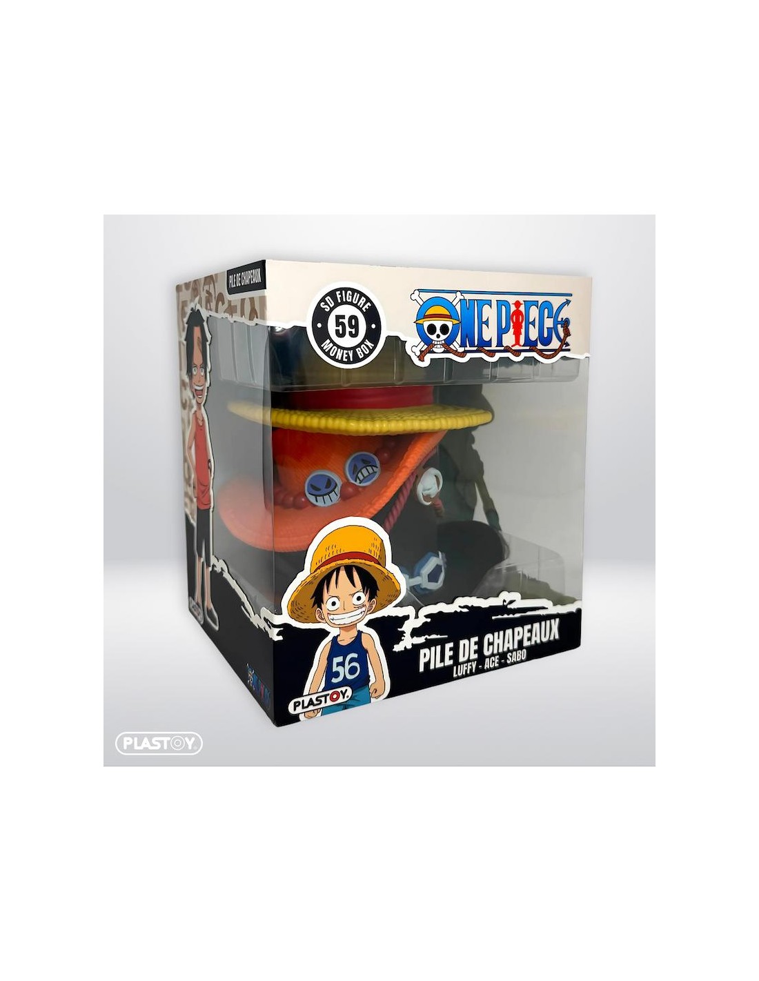 La Hucha Pila de Sombreros One Piece de 16 cm, fabricada por Plastoy, es un tributo encantador al famoso anime. Esta hucha reproduce una pila de sombreros emblemáticos de la serie, con un diseño detallado en colores vibrantes.