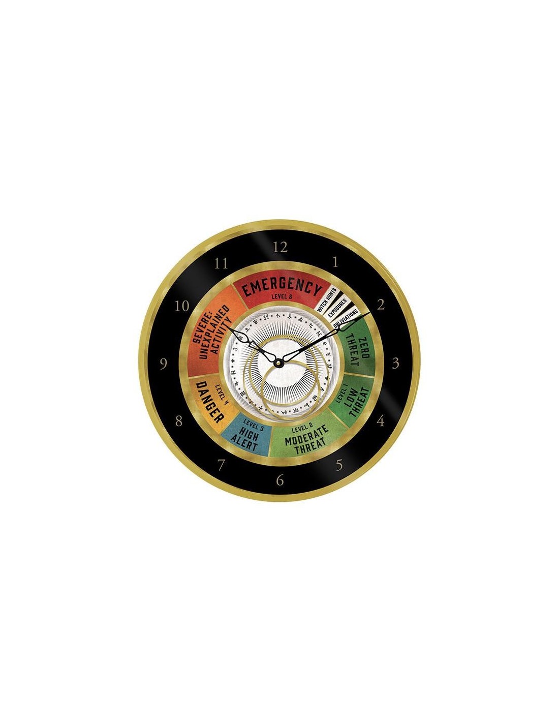 Reloj de pared de Animales Fantásticos y donde encontrarlos. Mide 25 cms de diámetro y dentro de su esfera están todos los carteles con los niveles de peligro que el MACUSA usa para alertar a todos los magos y brujas.
