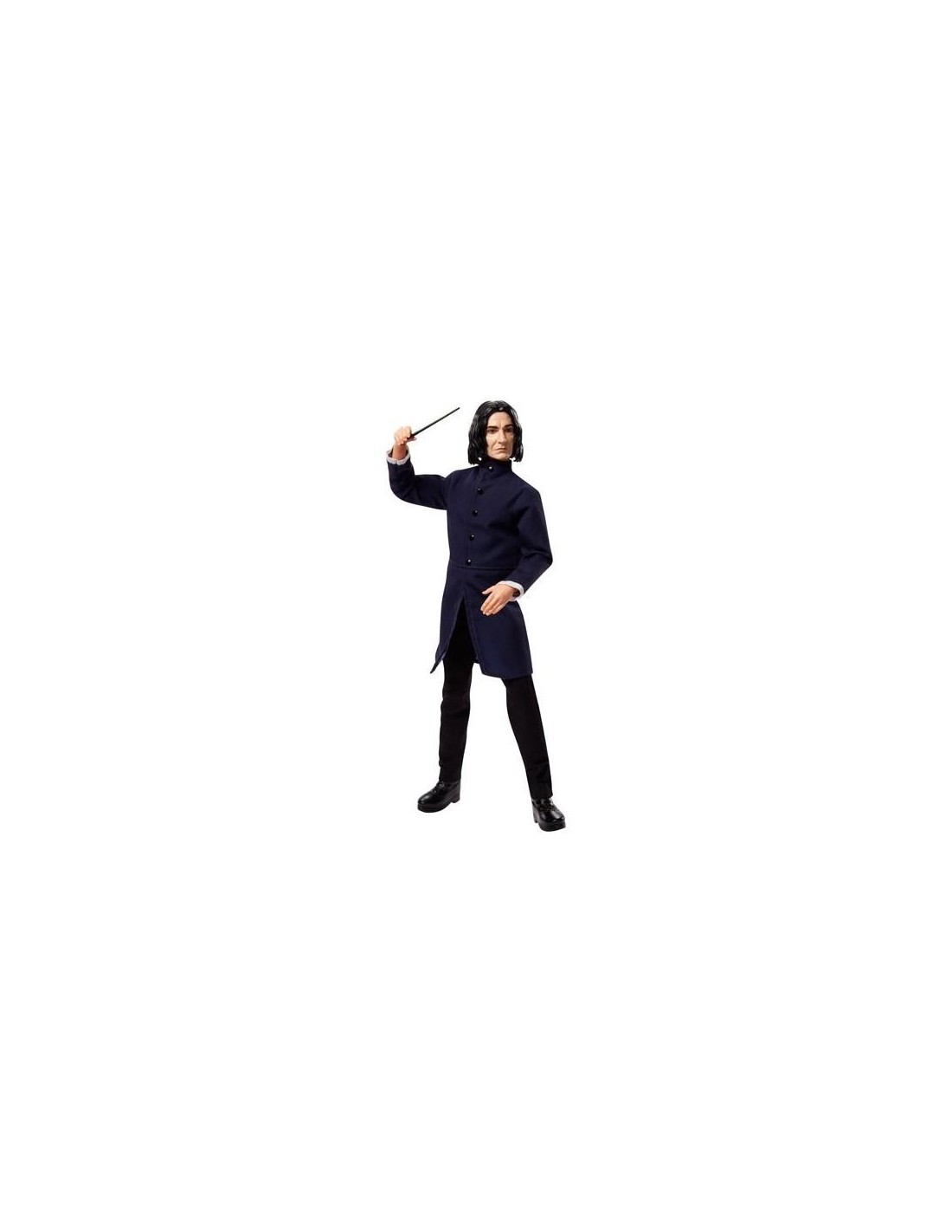 Muñeco del profesor Snape de Harry Potter con túnica negra, traje azul, botas negras y 1 varita mágica.