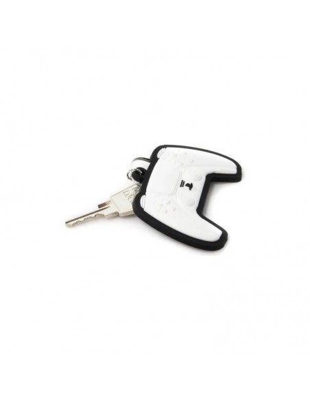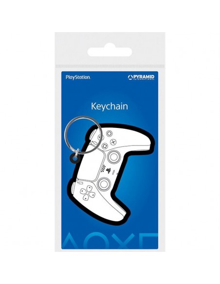Llavero de goma y aro de metal de Playstation. Sus medidas son 4,5 x 6 cm.
