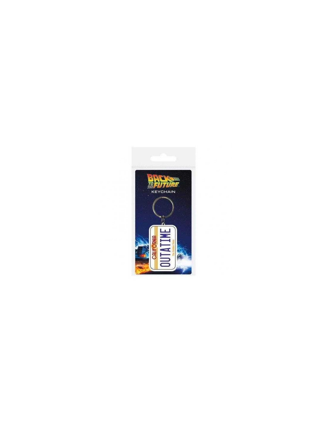 Llavero de la matrícula del DeLorean "OutATime " Fabricado en PVC y aro metálico.
