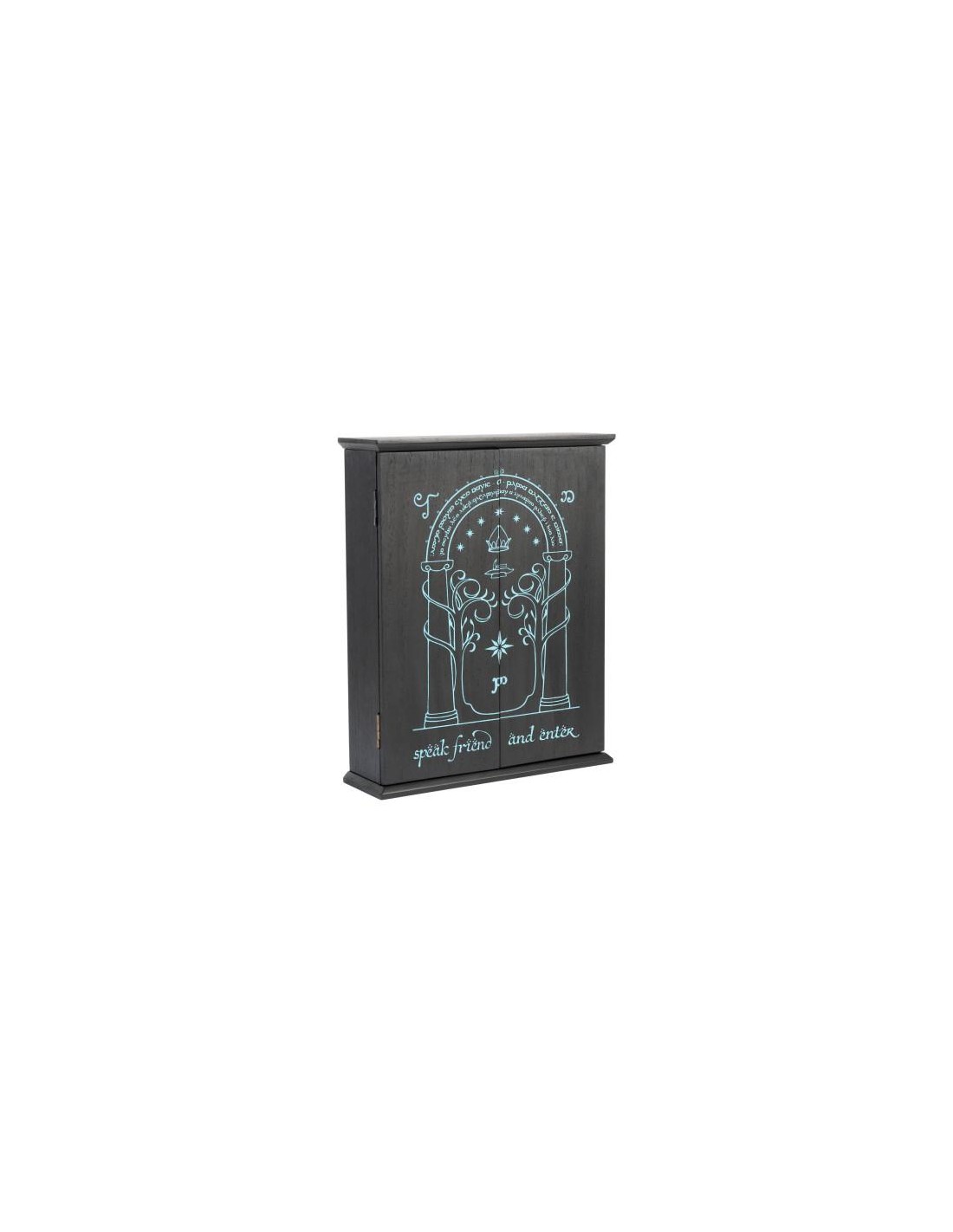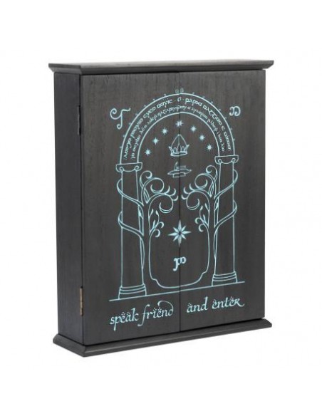 El Colgador de llaves Puerta de Moria se ha concebido como una solución práctica y estéticamente atractiva para el almacenamiento y organización de llaves. Fabricado en madera MDF de alta calidad, este elegante colgador no solo cumple una función utilitaria, sino que también se convierte en un elemento decorativo que puede integrarse perfectamente en diversos estilos de interiores.