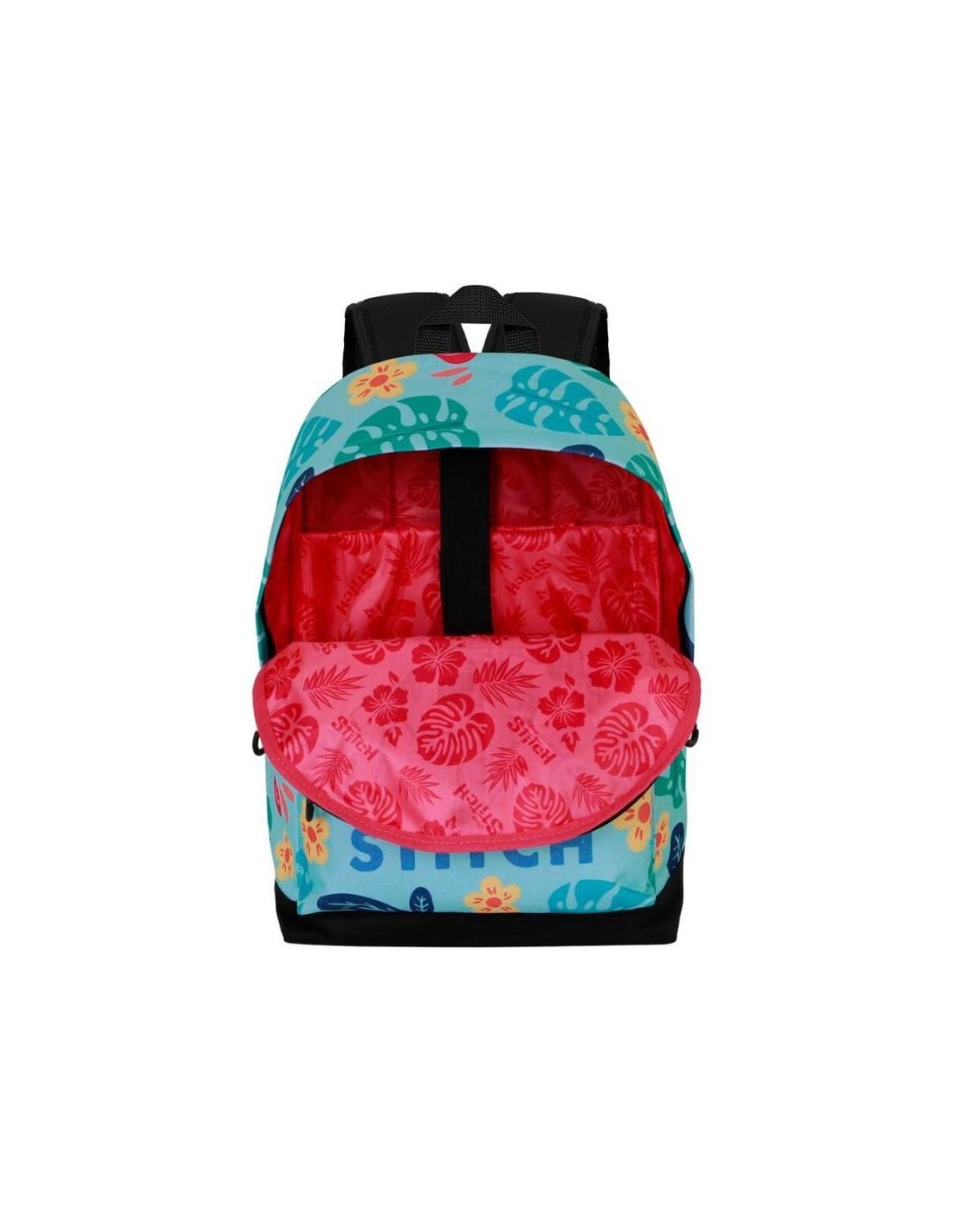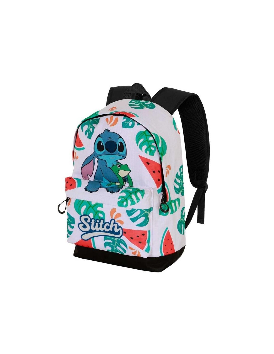 Mochila HS FAN 2.2 Lilo y Stitch Frog. Lilo y Stitch. Mochila con un único compartimento y un bolsillo frontal. Cuerpo en material de alta resistencia (Ripstop), repelente a líquidos en cantidades moderadas. Forro interior con bolsillo para dispositivos electrónicos. Correas acolchadas ajustables y cinta trasera adaptable a trolley.