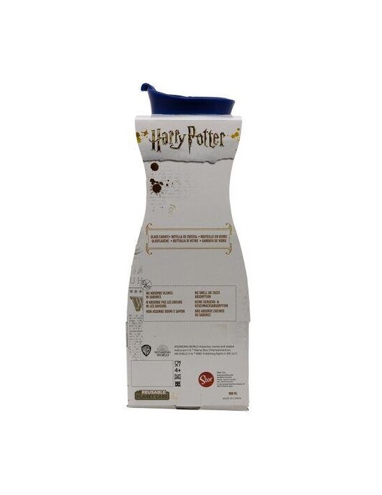 Botella de cristal color azul de harry potter con capacidad para 1000ml.