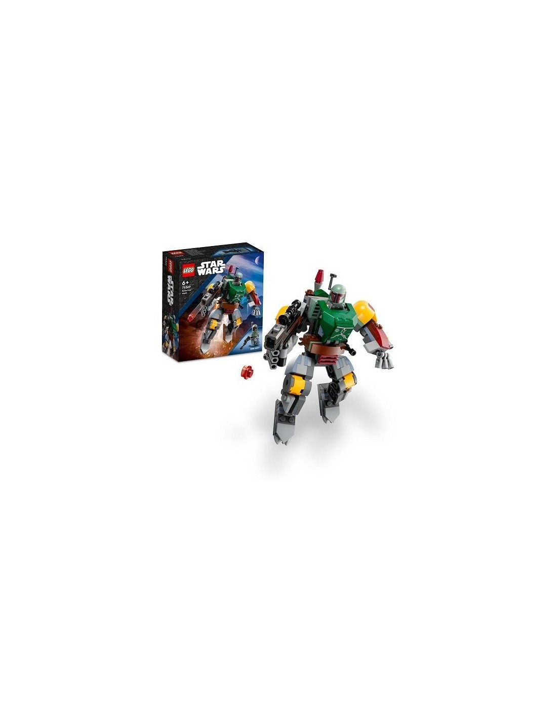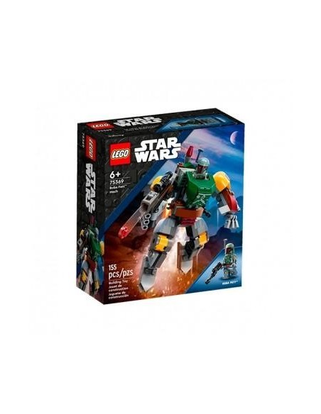 Meca de Boba Fett (75369) para jugar y exponer. Este traje robótico articulado cuenta con cabina abatible para la minifigura LEGO de Boba Fett, conector para su fusil bláster, manos prensiles para sujetar el bláster que dispara y gran mochila propulsora con lanzamisiles. La minifigura LEGO de Boba Fett tiene su propia mochila propulsora, que puede llevar puesta en la cabina del meca.