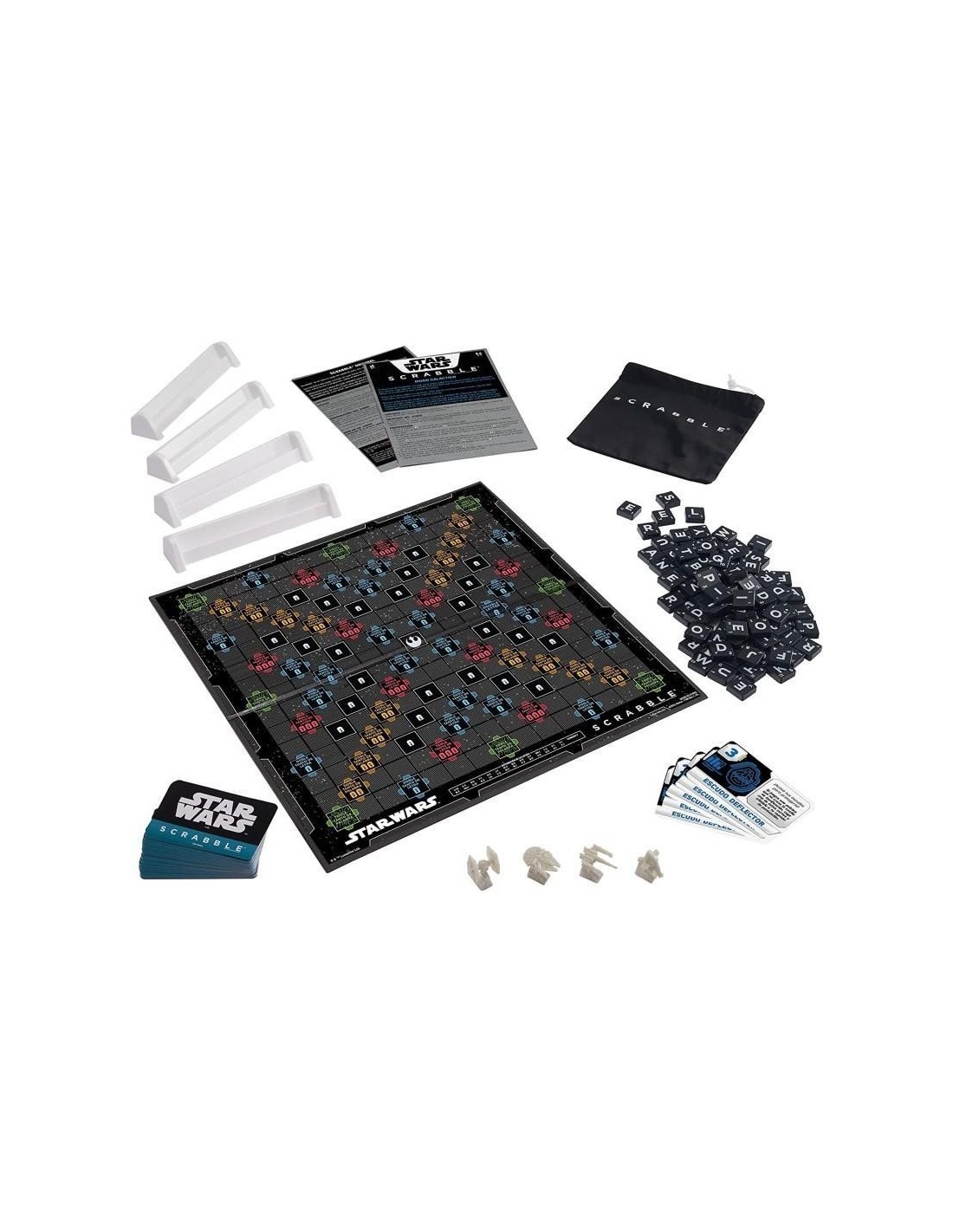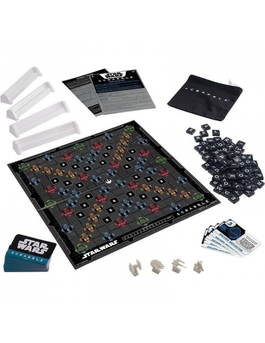 La caja de Scrabble Star Wars incluye 100 fichas de letras, 4 atriles, un tablero que recrea los lugares más emblemáticos de la saga, 36 tarjetas con desafíos y palabras especiales relacionadas con Star Wars, un glosario con términos del mundo de la galaxia y, por supuesto, las instrucciones para que puedan comenzar a jugar de inmediato. Además, les entusiasmará saber que esta edición está completamente en español, brindándoles una experiencia de juego comprensible y apasionante.