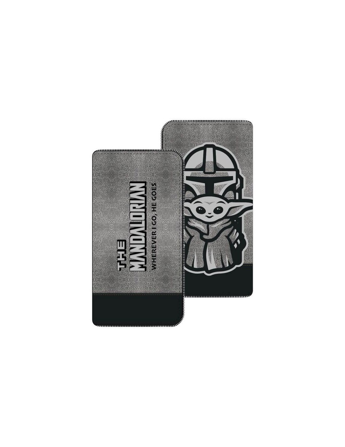 Cartera billetero de El Mandaloriano, con espacio para tarjetas y cremallera interior para monedas. Su tamaño es de 18,7 x 9,7 x 2 cm.