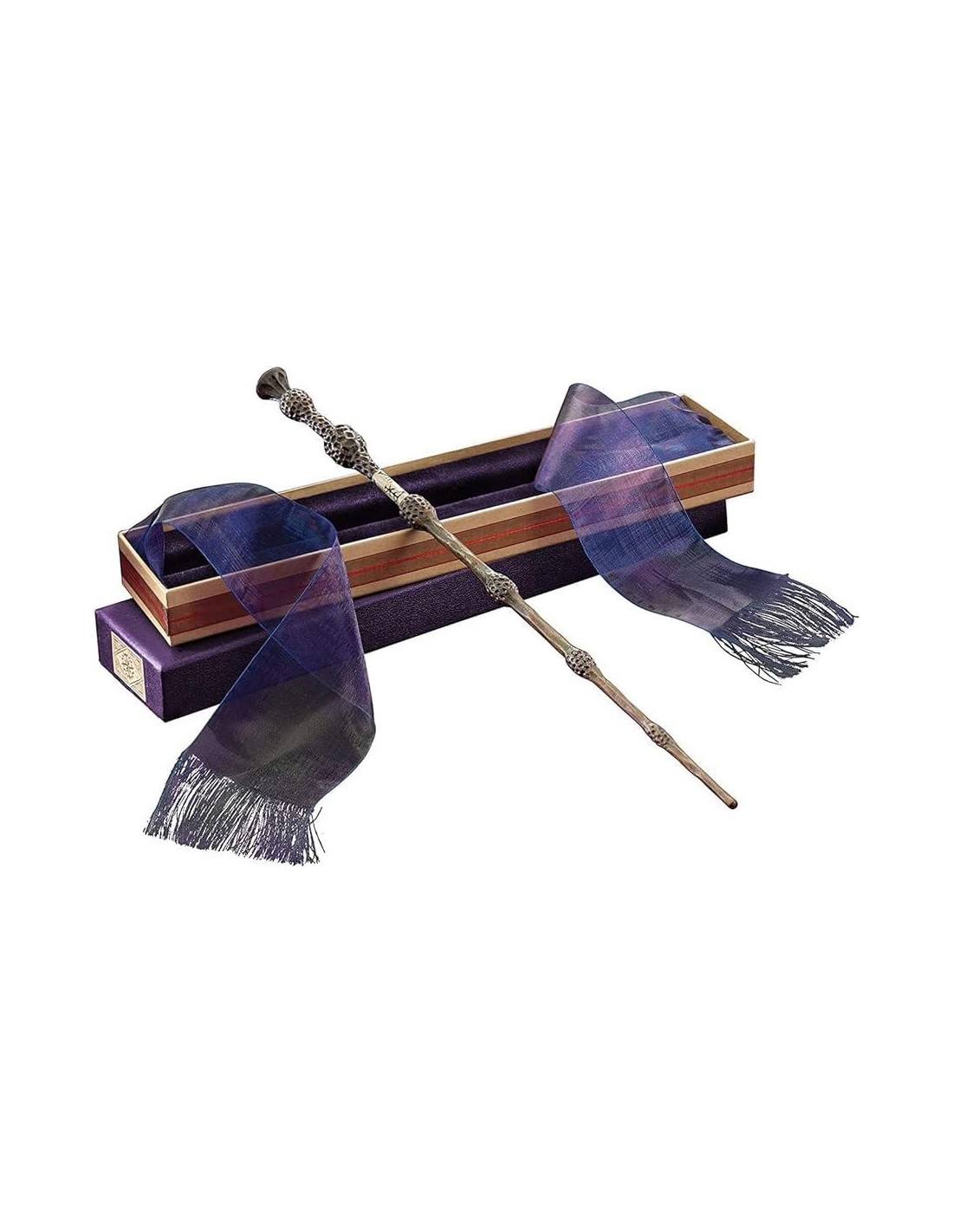 La varita del profesor Albus Dumbledore, querido director de Hogwarts, con caja de Ollivander incluida. Esta varita también se conoce como la varita de saúco.