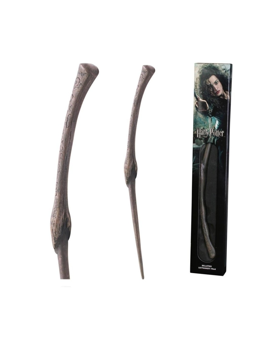 La varita de Bellatrix Lestrange en una caja con ventana estándar. Esta varita es idéntica a la versión de coleccionista, pero sin la caja de coleccionista.